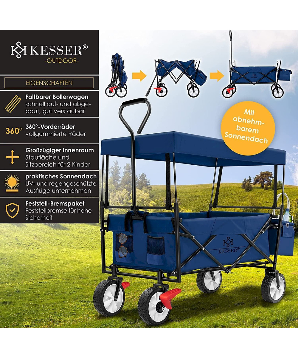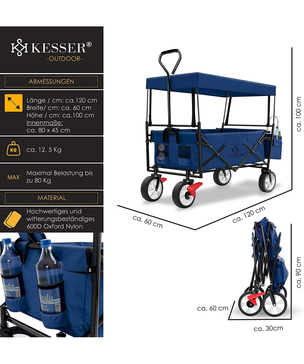 KESSER Bollerwagen faltbar mit Dach - bis 100 kg Tragkraft - Blau-Navy