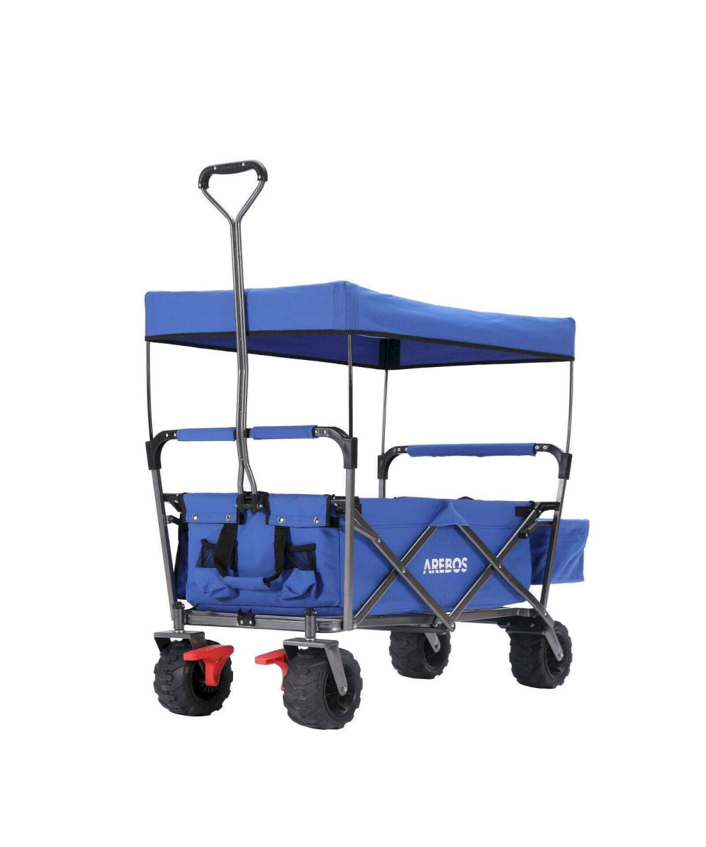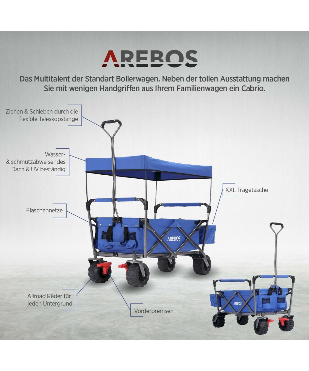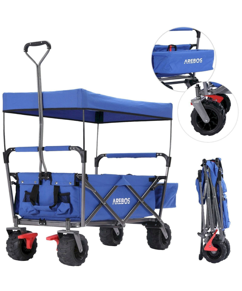 AREBOS Bollerwagen mit Dach | Handwagen Transportkarre Gerätewagen | blau