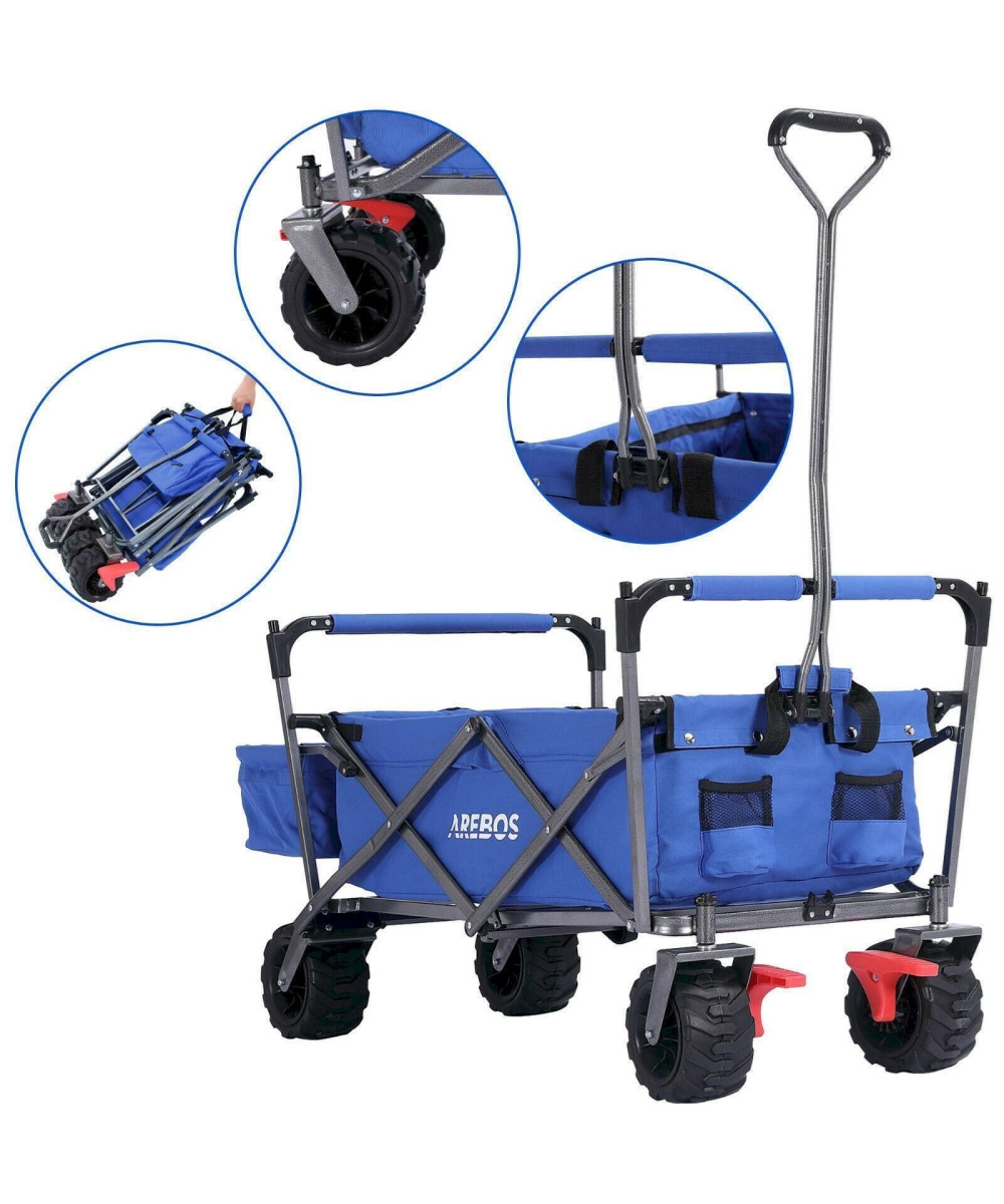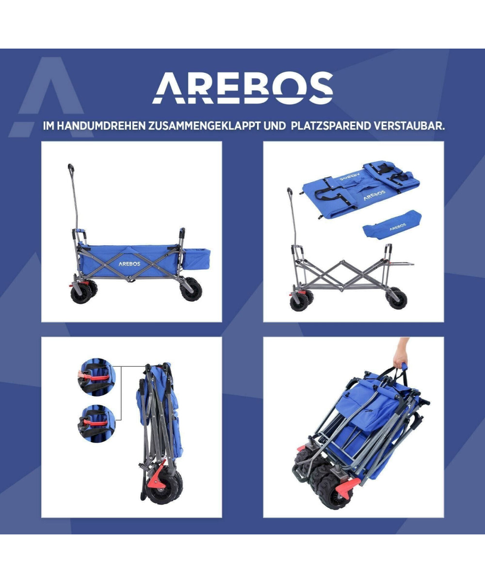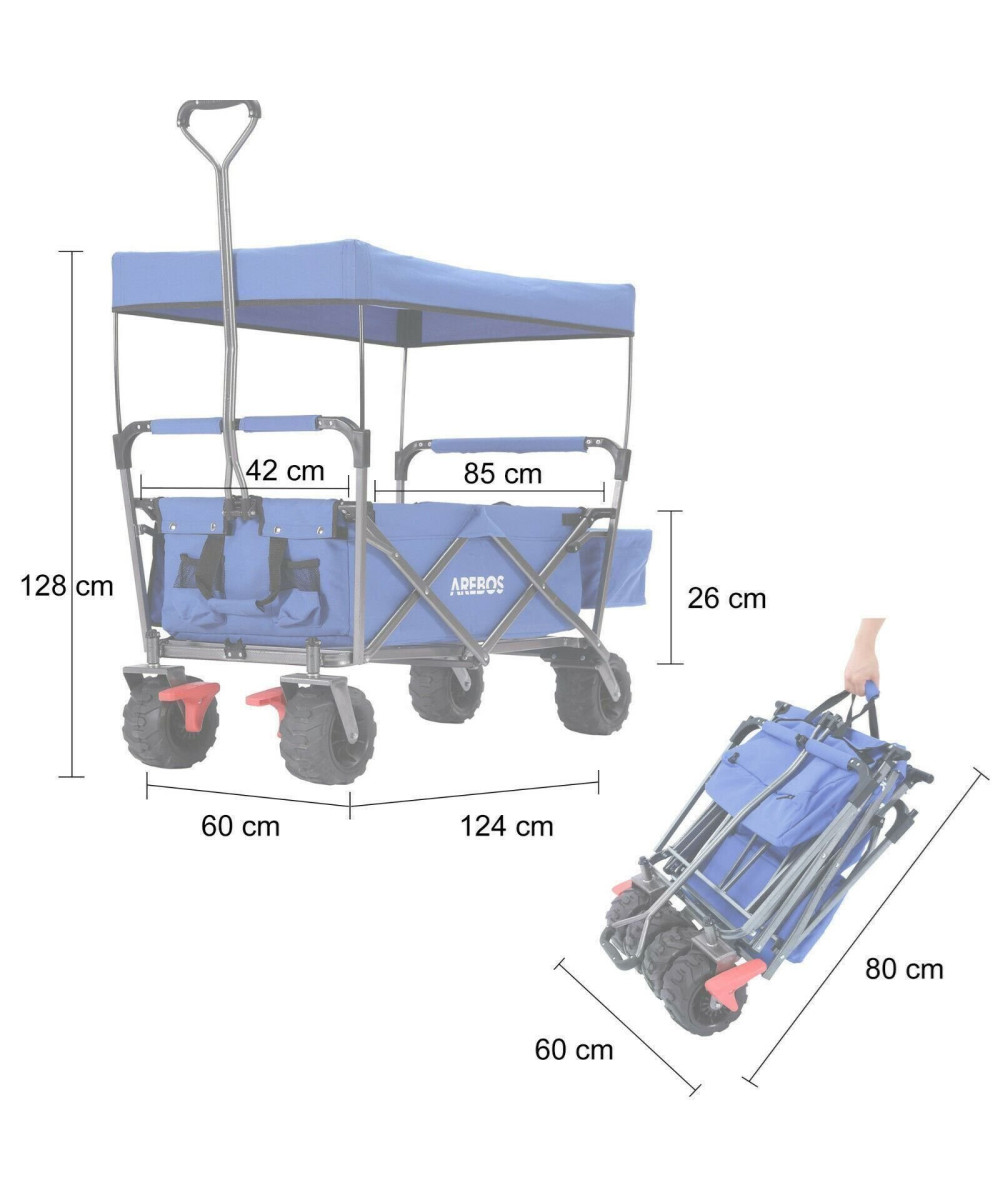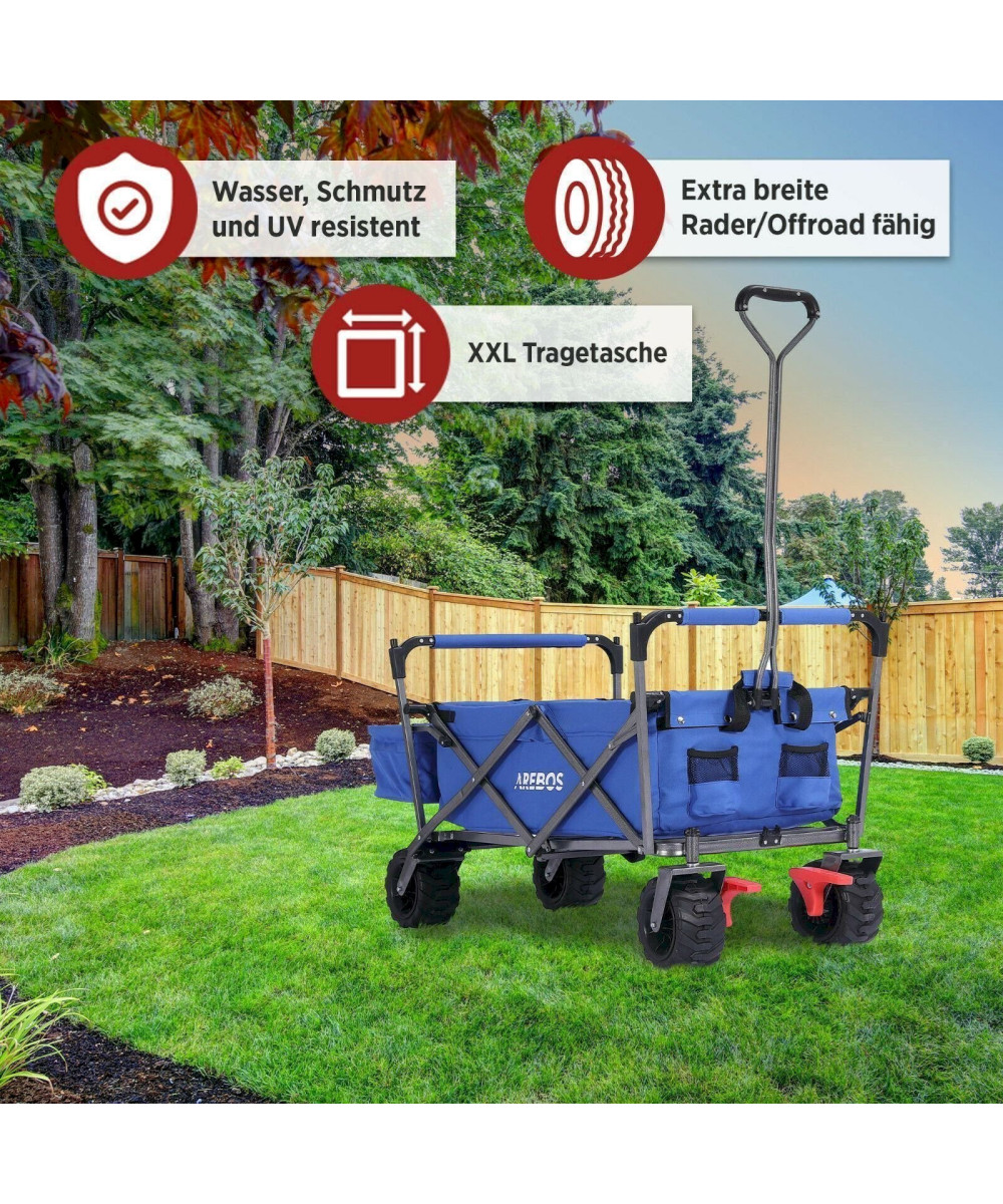 AREBOS Bollerwagen mit Dach | Handwagen Transportkarre Gerätewagen | blau