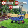 Der Wagen ist mit einer zusammenklappbaren Rahmenkonstruktion konstruiert, sodass der Wagen in Sekundenschnelle zusammenfaltbar und in eine kompakte Größe zu bringen ist. Das strapazierfähige Material und die stabile Rahmenkonstruktion bieten eine Maximale Auslastung: bis zu 100 kg.