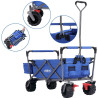 Ein abnehmbares Sonnendach und die abnehmbare XXL-Tasche an der Rückseite, zwei Getränkehalter an der Vorderseite bieten wertvollen zusätzlichen Stauraum. Die Vorderachse dieser Transportkarre ist mit 4-Wege-Rädern ausgestattet, um eine einfache Steuerung zu ermöglichen.