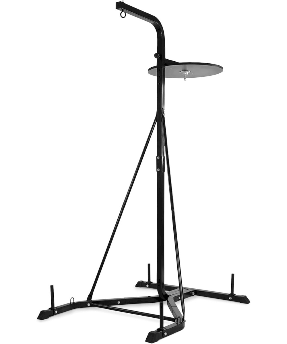 Dieser 2-in-1-Ständer aus robustem Stahl mit einem soliden, stabilen Fuß, ist zum Aufhängen von Boxsäcken und Speedballs vorgesehen. Die freistehende Boxsack- und Speedball-Halterung ist vierfach höhenverstellbar, so dass Sie sie auf die für Sie passende Höhe einstellen und diesen Fitnessgerät individuell anpassen können. Für zusätzliche Stabilität des Ständers sind in seinem Sockel vier Gewichtshaken eingebaut.