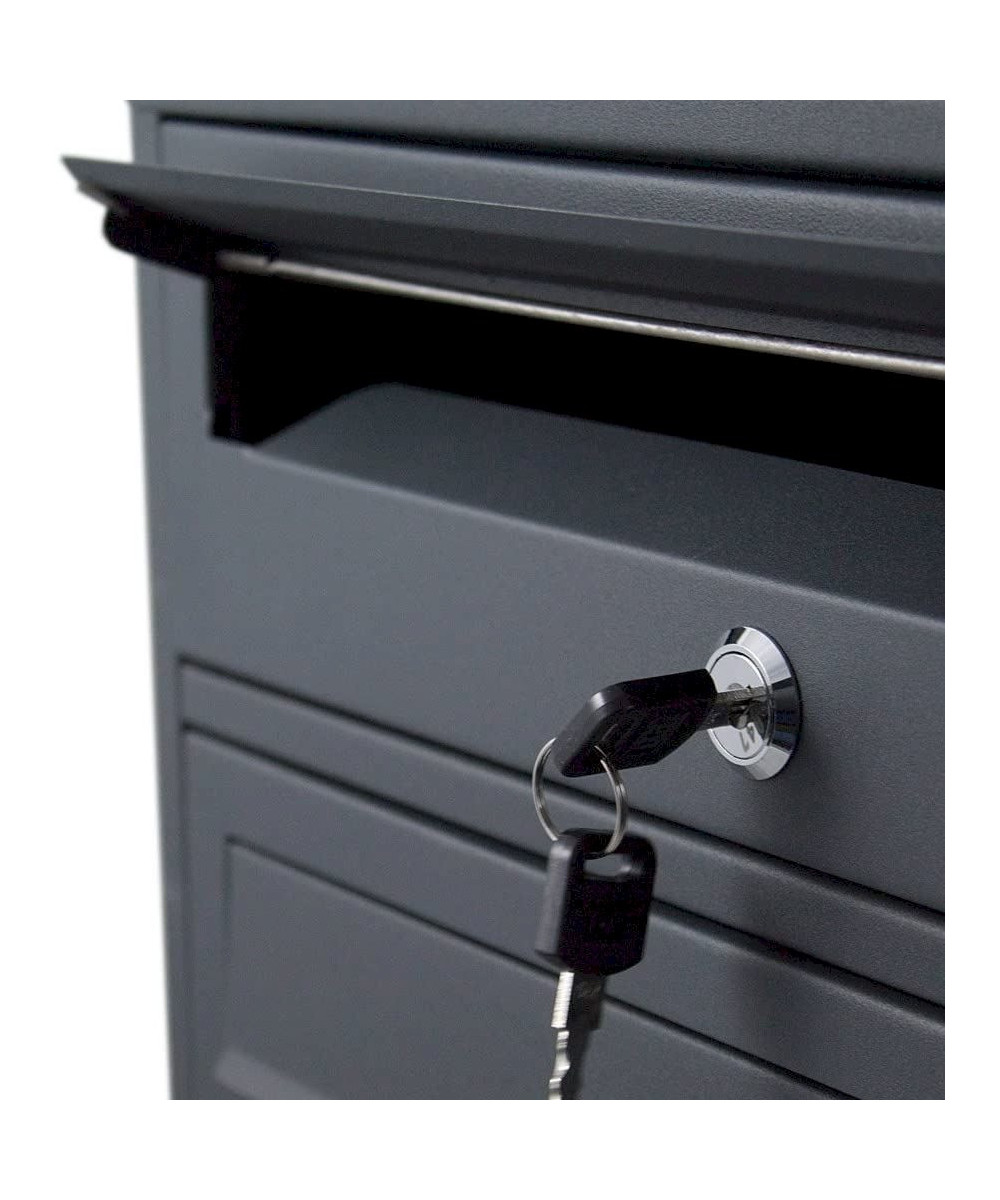 Und durch die kompakte Ausführung beansprucht die 4er Briefkastenanlage wenig Platz. Der Aufbau geht dabei schnell und einfach von der Hand. Der Lieferumfang beinhaltet Befestigungsmaterial für Betonfundamente.