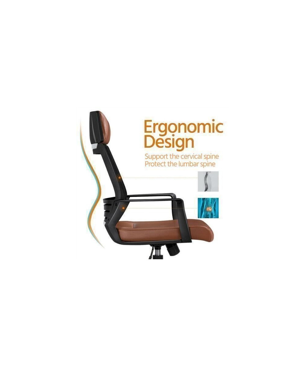 【Ergonomischer Schreibtischstuhl】: Kunstleder Kopfstütze und Rückenlehne aus flexiblem Netzgewebe, das sich optimal an Ihre Körperform anpassen kann. Lendenwirbelstütze für den unteren Rücken zur Erhöhung von Arbeitssicherheit und Komfort.