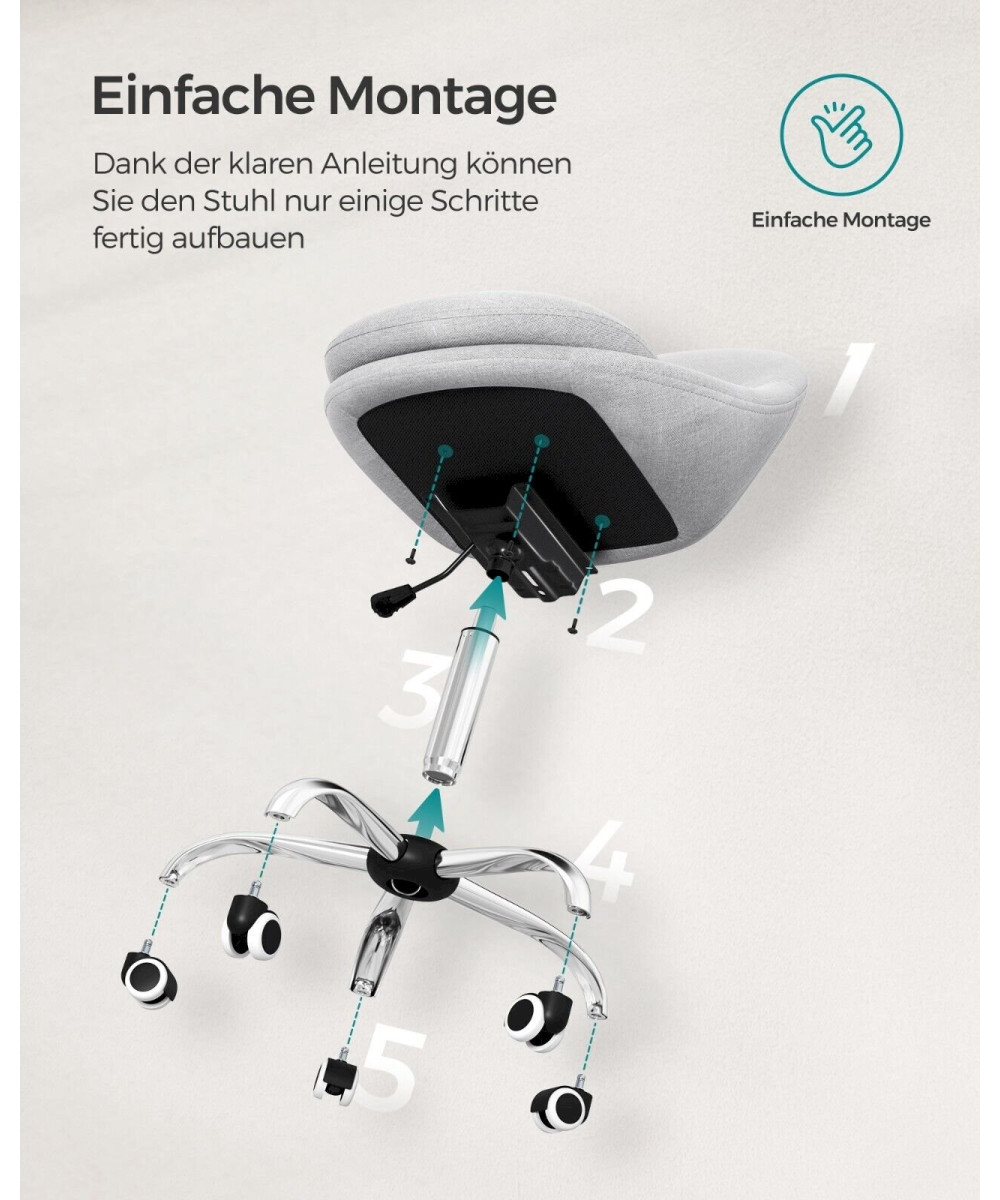 [Einfache Montage] Befestigen Sie die Bodenplatte mit Schrauben unten an der Sitzfläche, installieren Sie die Gaszylinder und die Rollen – nur einige Schritte ist schon der Computerstuhl fertig aufgebaut