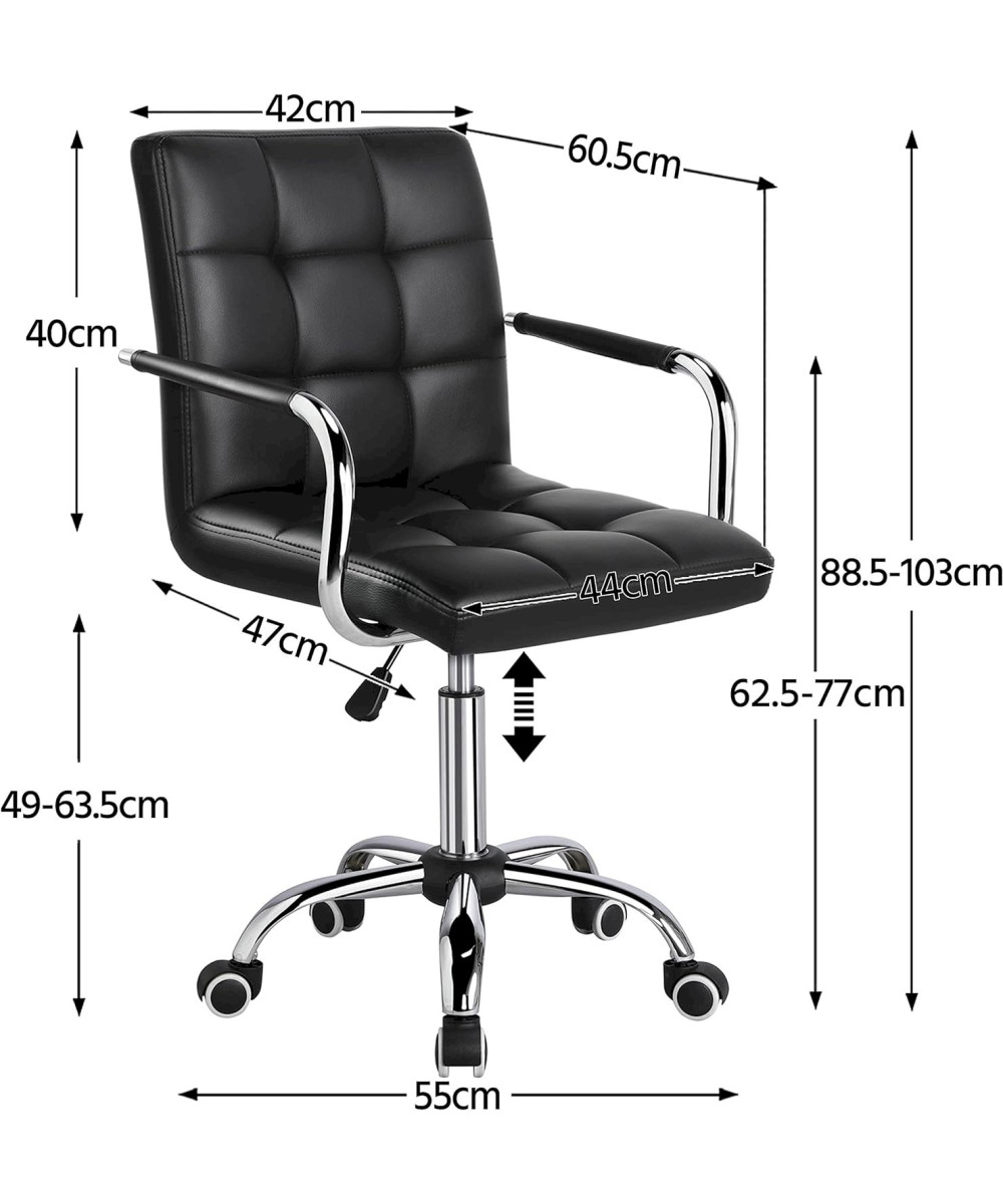 - Schickes Design: Dieser Bürostuhl ist in klassischen Farben gehalten. Die Struktur aus hochwertigem Kunstleder und der galvanisierte Metallrahmen erhöht die optische Attraktivität und verleiht ihm zusätzliche Eleganz. Durch das einfache Design lässt sich dieser Stuhl leicht in das bestehende Raumdesign integrieren. Wir haben verschiedene Farben für Sie zur Auswahl.