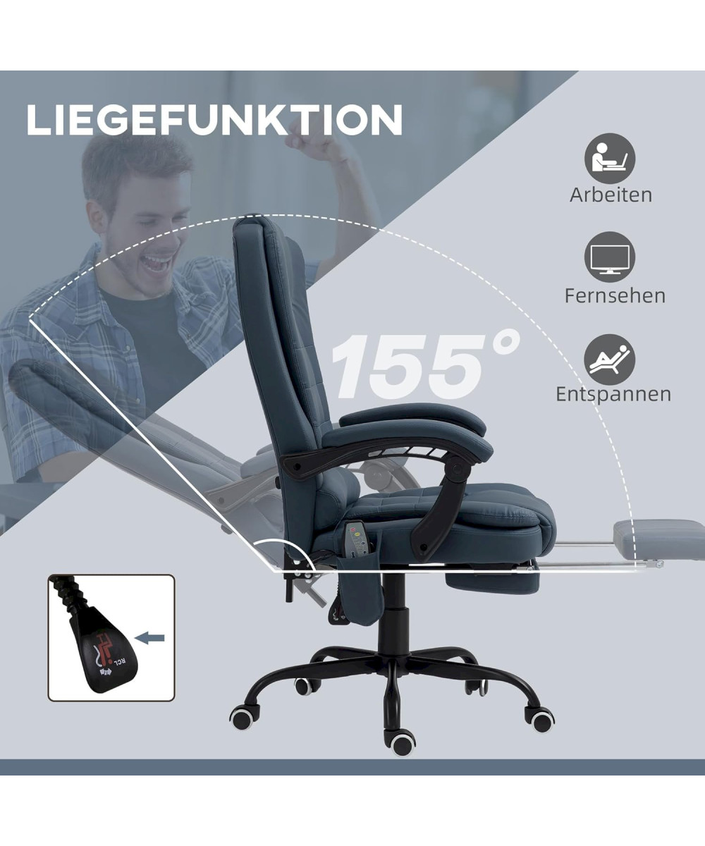 Vinsetto Bürostuhl mit 7 Punkt Massage Blau Bürosessel mit Liegefunktion