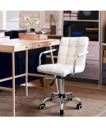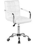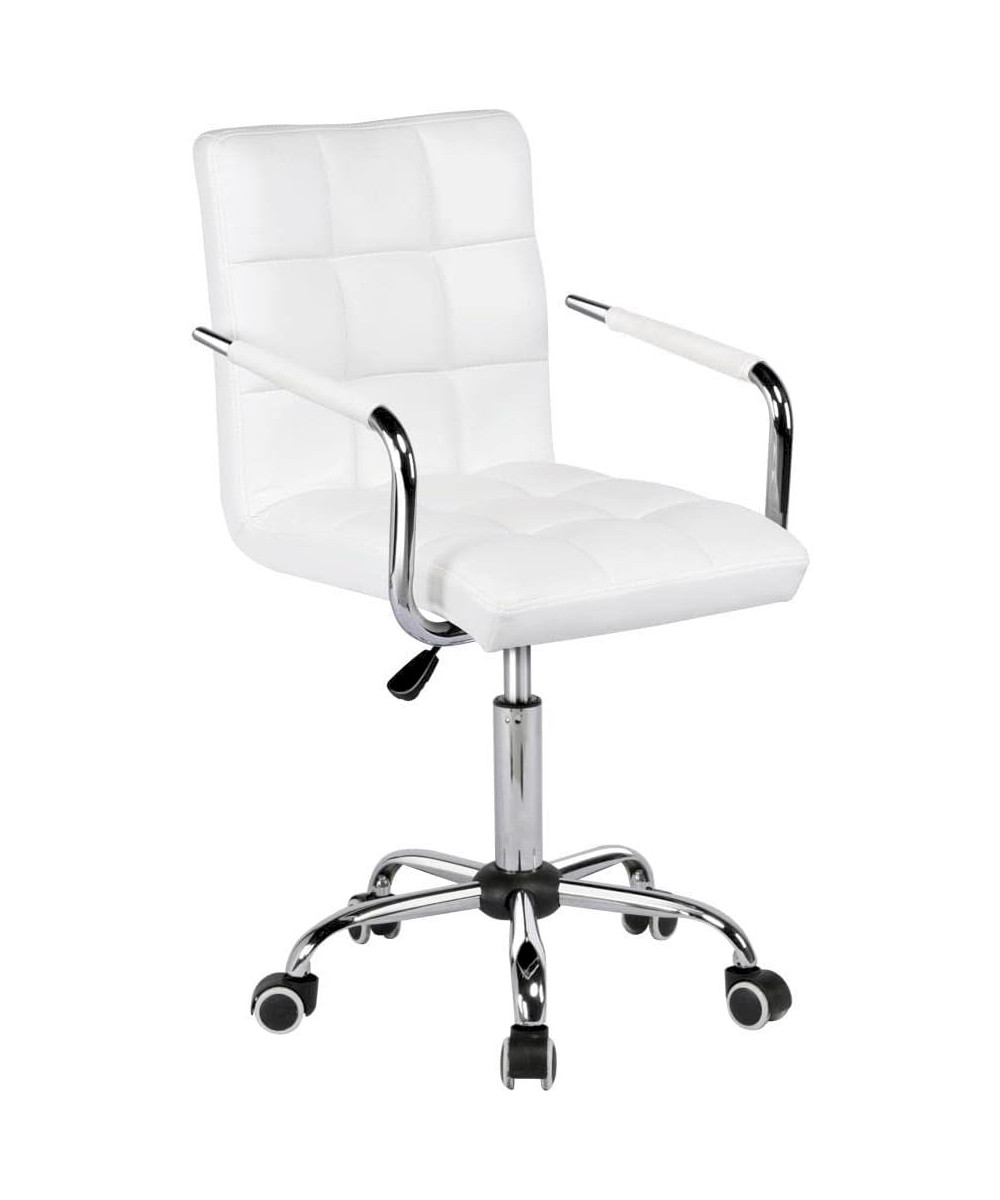Bürostuhl mit Armlehnen drehbar aus gepolstertem PU weiss