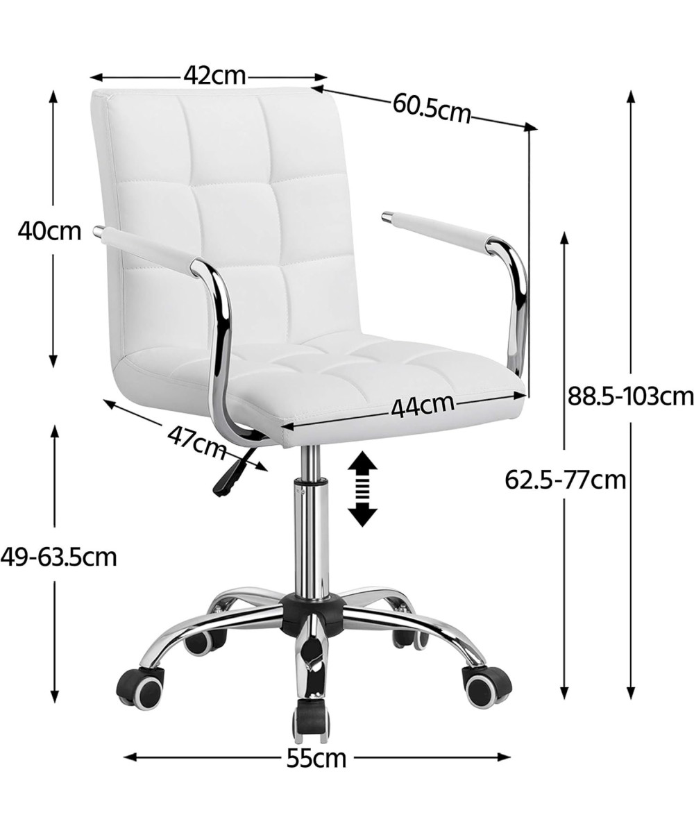 - Schickes Design: Dieser Bürostuhl ist in klassischen Farben gehalten. Die Struktur aus hochwertigem Kunstleder und der galvanisierte Metallrahmen erhöht die optische Attraktivität und verleiht ihm zusätzliche Eleganz. Durch das einfache Design lässt sich dieser Stuhl leicht in das bestehende Raumdesign integrieren. Wir haben verschiedene Farben für Sie zur Auswahl.