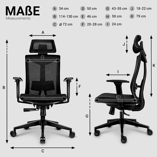 Bei diesem Schreibtischstuhl lässt sich die Sitzfläche um bis zu 6 cm ausziehen und die Sitzhöhe um bis zu 12 cm stufenlos verstellen . Die Rückenlehne kann bis zu 125 ° geneigt werden und ermöglicht auch bei längerem Sitzen ein entspanntes Wohlbefinden. Durch exakte Einstellung werden die Beine und der Rücken entlastet.