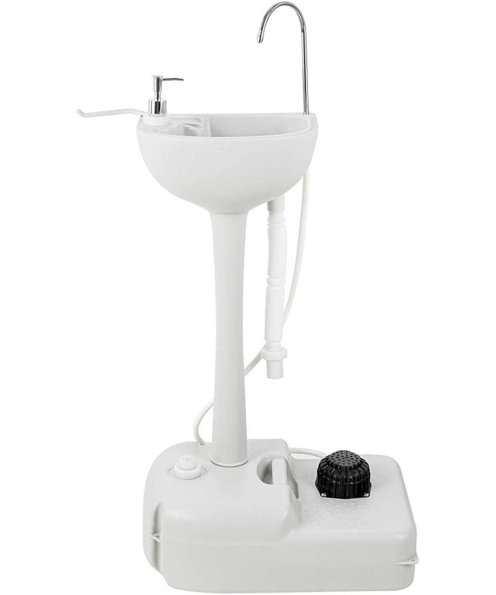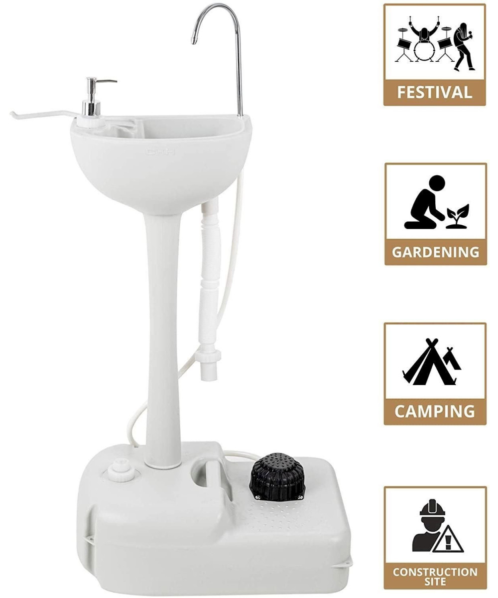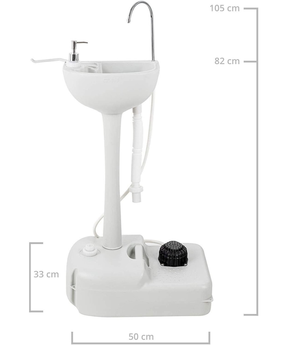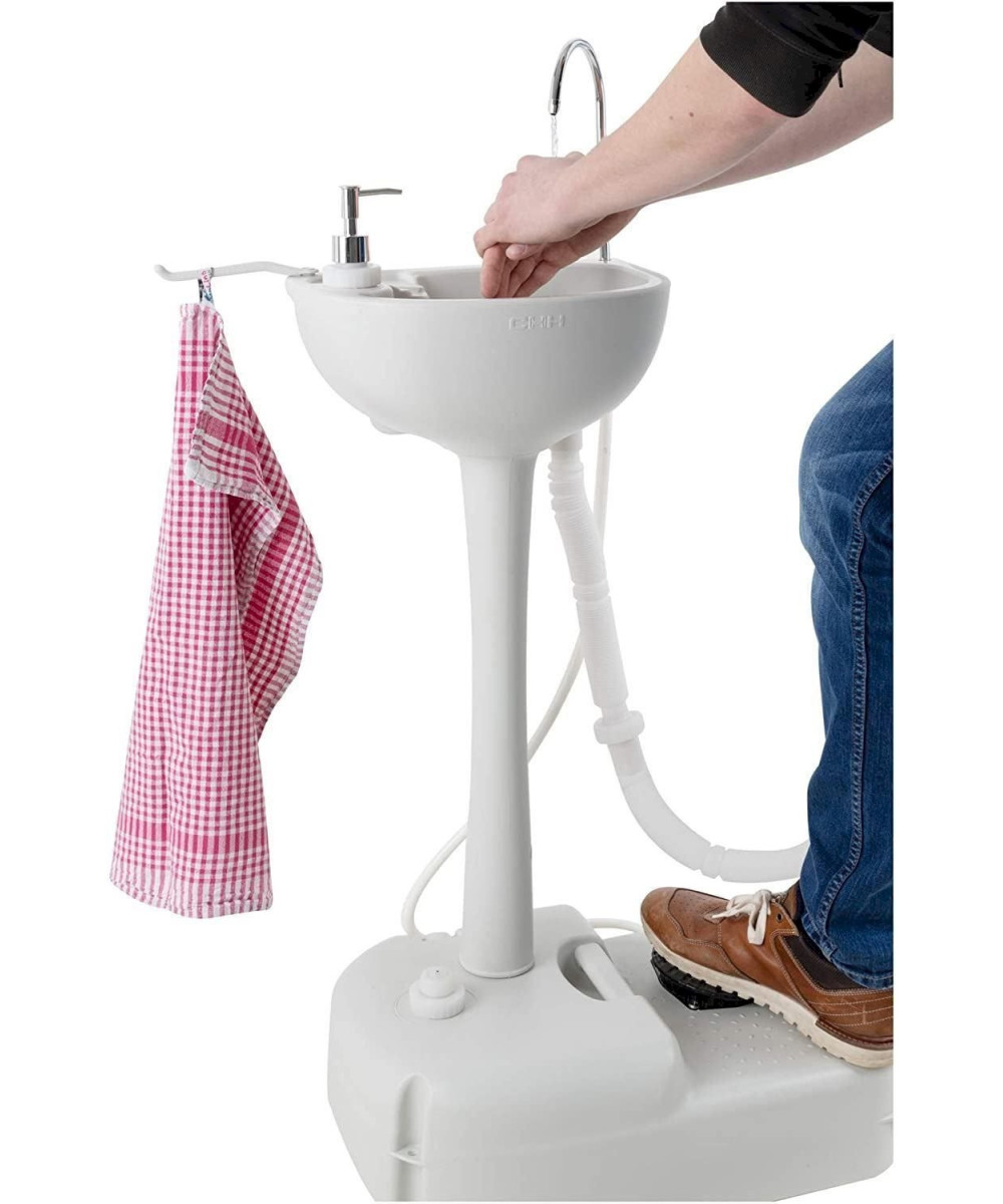 Das Quixie Waschbecken bietet Komfort und Hygiene für Festival-Enthusiasten! Ein großer Wassertank mit mechanischer Fußpumpe, Seifenspender und Handtuchhalter ermöglicht saubere Hände auf Open Airs, beim Camping, im Zeltlager, auf Baustellen, bei der Gartenarbeit oder bei Grillpartys.