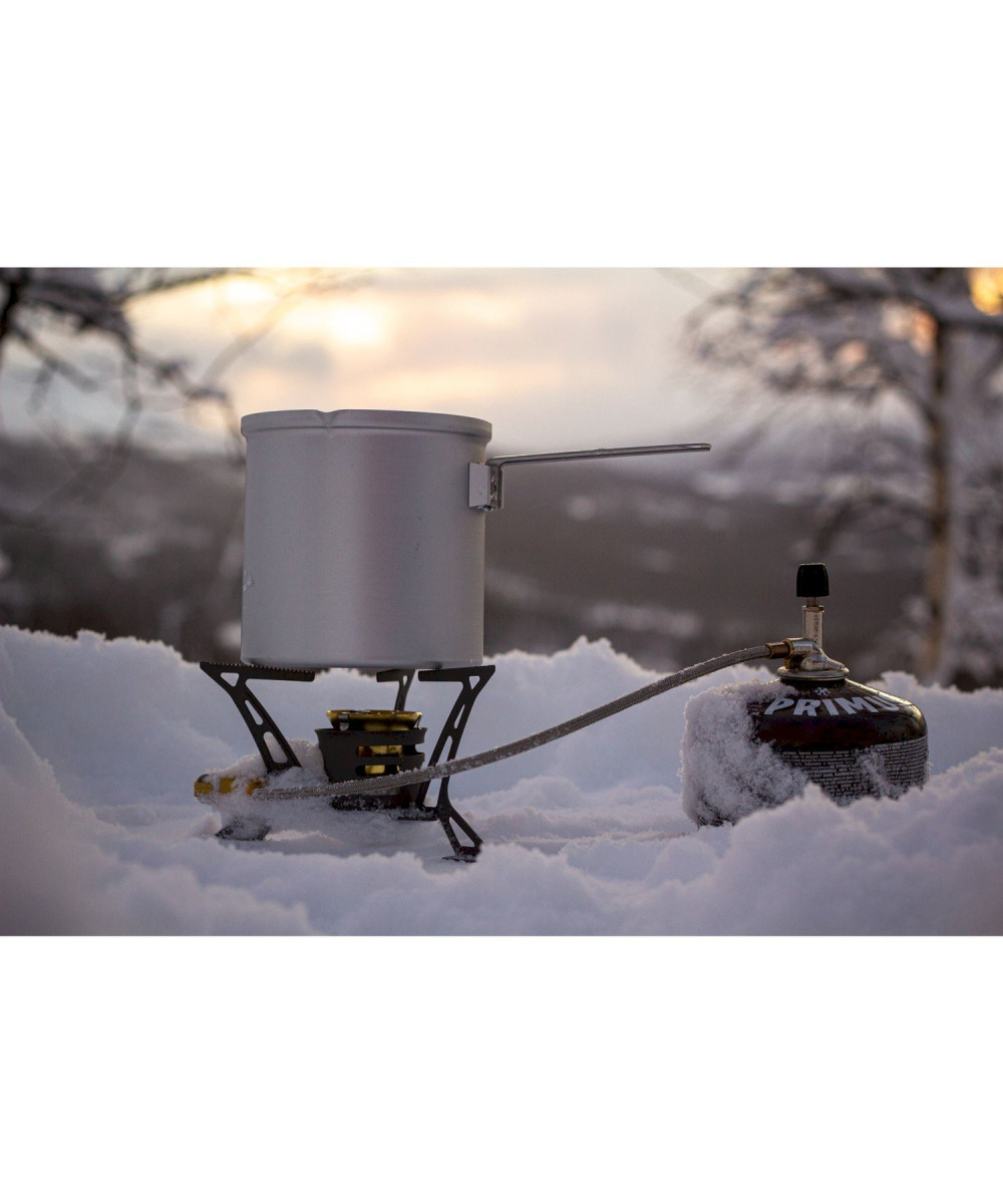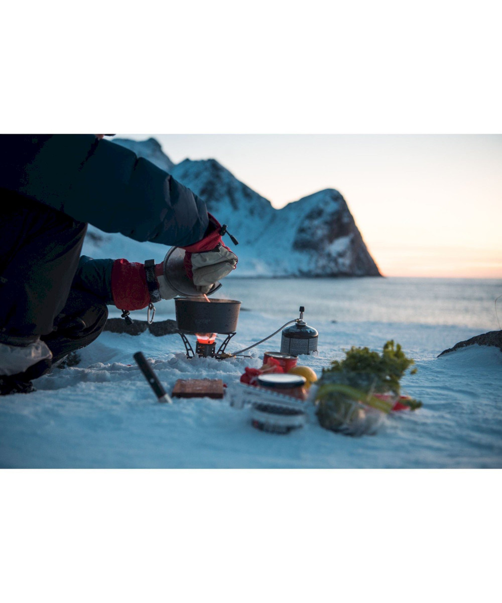 Die Leistung wurde an die neue Generation Brennstoff-sparender Töpfe mit Wärmetauscher (wie unsere Eta™ Töpfe) angepasst. Windschutz und Topfauflagen bestehen aus Titan, was den Kocher sehr leicht und zugleich robust macht. Der OmniLite Ti verbrennt Flüssiggas, Benzin, Petroleum, Kerosin und sogar Diesel. Über den Regler direkt am Brenner lässt sich die Flamme präzise und schnell auf die gewünschte Stärke einstellen. Sogar mit Handschuhen.