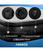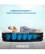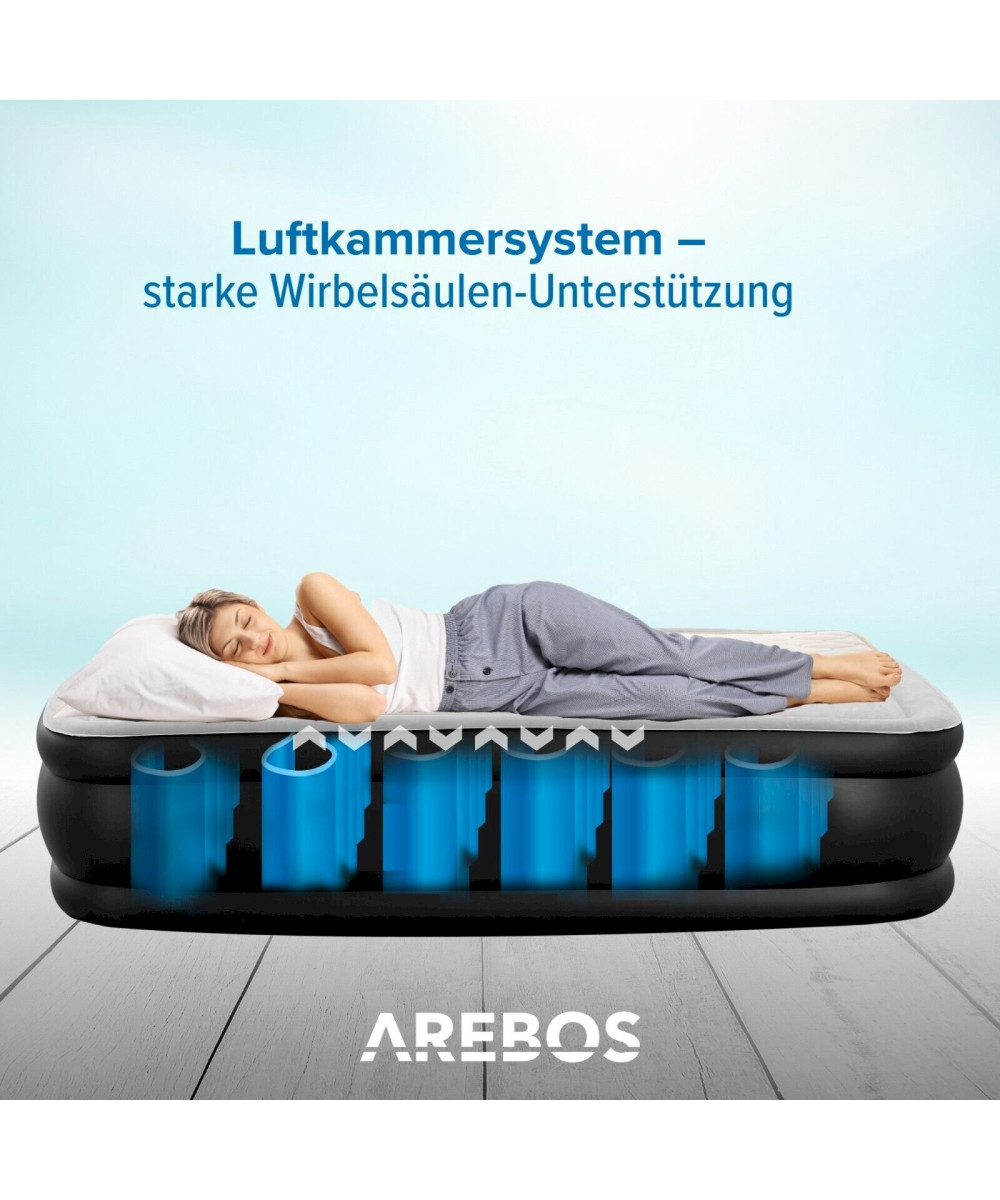 Das Luftbett von AREBOS ist größer und stabiler als gewöhnliche Luftmatratzen. Die Luftbetten von AREBOS sind dank des neuartigen PVCs speziell für einen angenehmen und erholsamen Schlaf konzipiert.