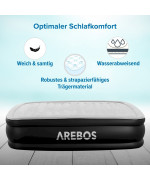 Dank die Anpassungsfähigkeit passt sich die Luftmatratze von AREBOS ideal der Liegeposition an. Auch bei hohem Gewicht behält das Bett seine Form und bleibt stabil. Gebürstetes Material gewährleistet maximale Belastbarkeit.