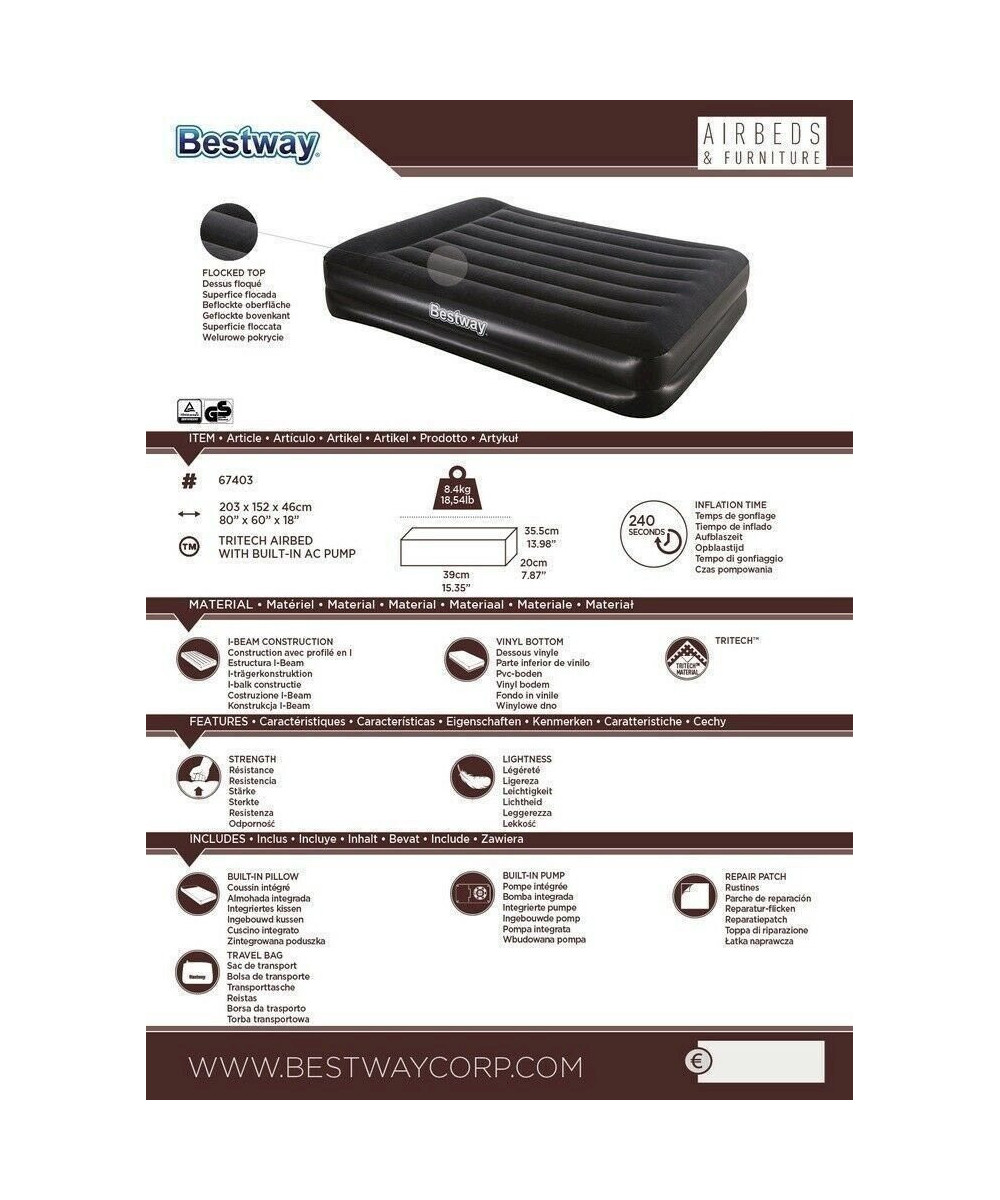 Bestway 67403 Luftbett Luftmatratze Gästebett inkl 220V Pumpe Bett 203x152x46cm XXL