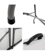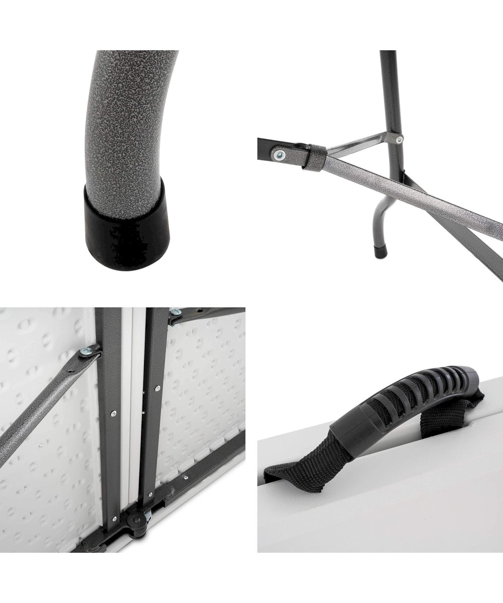 Mit wenigen Handgriffen zusammengeklappt lässt sich der Mehrzwecktisch platzsparend verstauen und auch dank einem Tragegriff überall mit hinnehmen. Dank der Gummischoner an den Füßen können Sie den Tisch auch bedenkenlos in Inneräumen aufstellen.