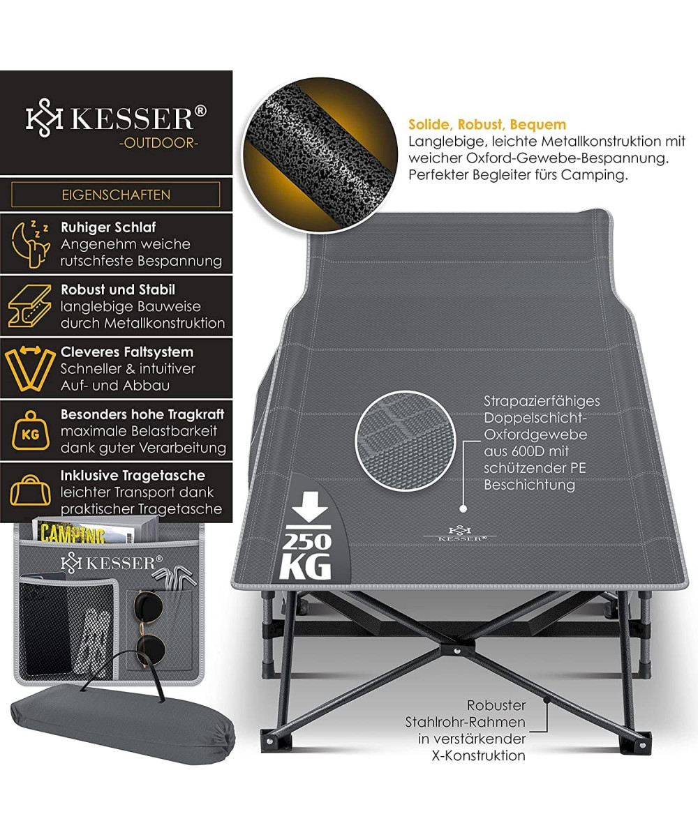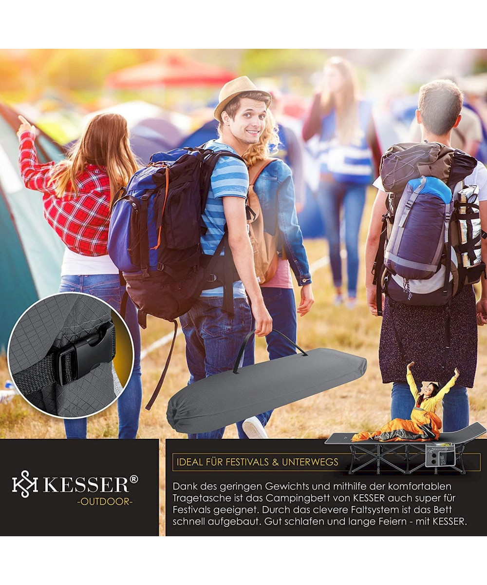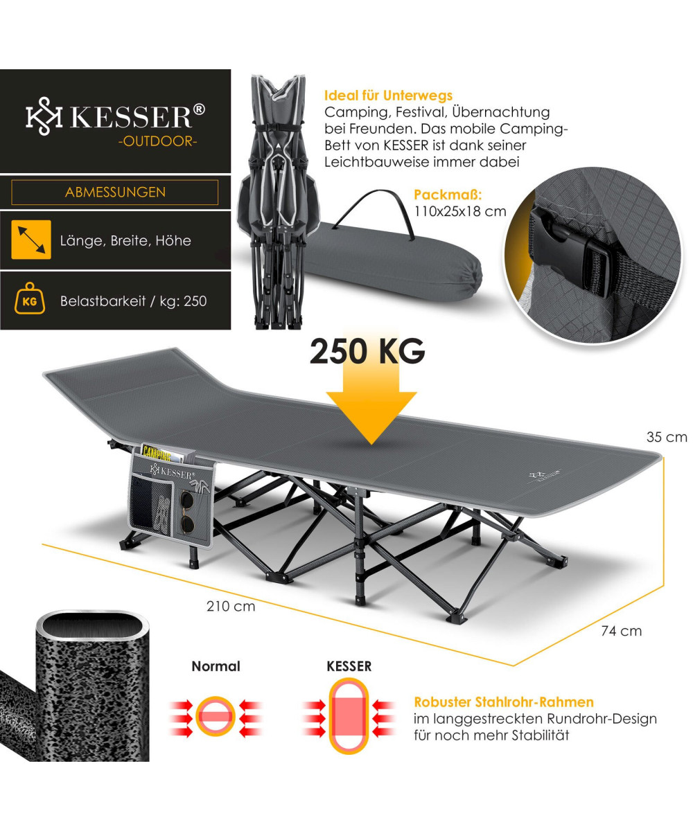 KESSER Campingbett Feldbett Klappbar Klappbett 210cm Anthrazit inkl. Tragetasche + Seitentasche