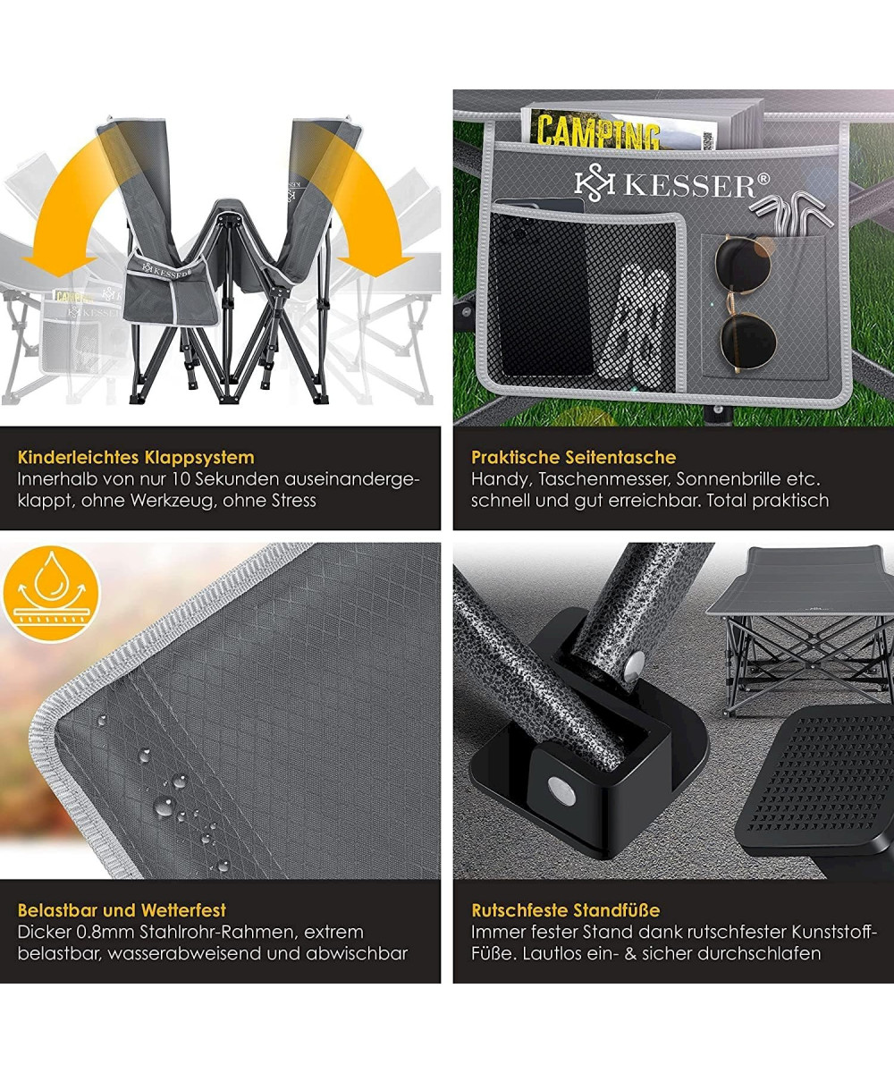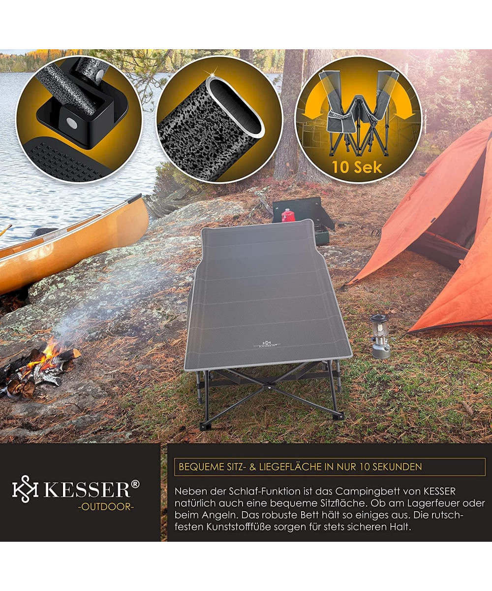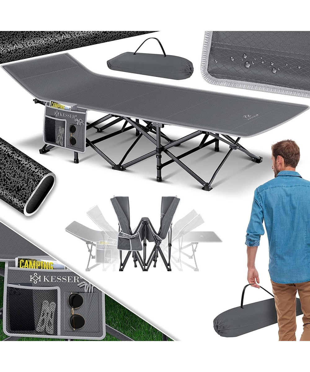 KESSER Campingbett Feldbett Klappbar Klappbett 210cm Anthrazit inkl. Tragetasche + Seitentasche