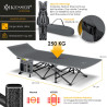 Mit einer hohen Tragkraft von bis zu 250 kg ist das Klappbett besonders robust und langlebig. Die hochwertige und robuste Verarbeitung sorgt dafür, dass das Bett auch bei häufigem Gebrauch seine Form und Stabilität beibehält. Die Tragetasche, die im Lieferumfang enthalten ist, erleichtert den Transport und die Aufbewahrung der Campingliege.