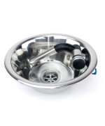 - 1 St. Spülbecken in 31 cm Durchmesser aus Edelstahl ( Einbaumaß = 29 cm ) ( Einautiefe incl. Ablauf = 14,5 cm )