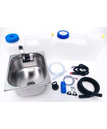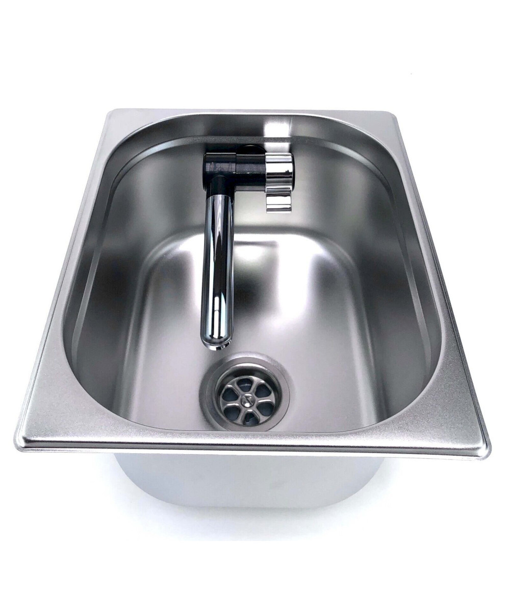 Kompletter Bausatz für eine 12V Küchenspüle / Spülbecken / Küchenblock / Campingspüle die in einen Campingwagen, Wohnmobil, Bulli (T4, T5, T6), Marktstand, Camper Van von VW Mercedes oder Ford etc. eingebaut werden kann