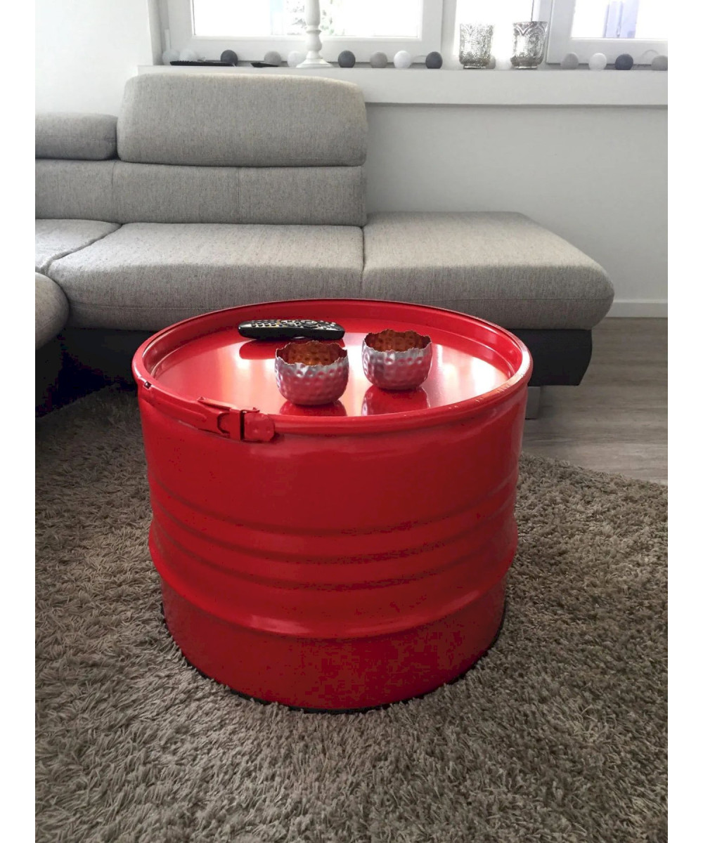 Fassmöbel Couchtisch H45cm Ø57cm Ölfass Beistelltisch mit Spannring rot