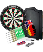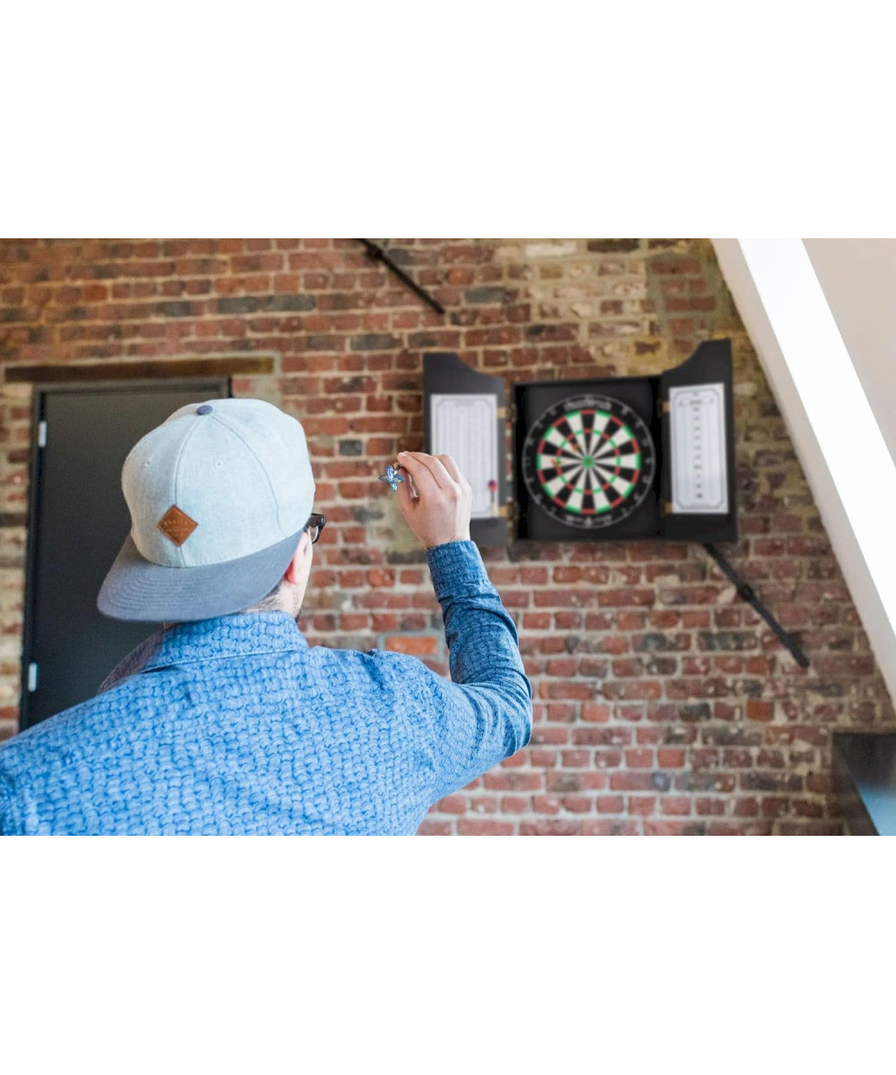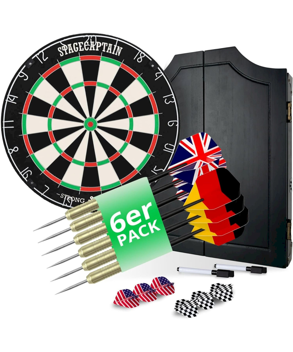 - Inkl. 6 Steeldarts, 12 Flights, 2 Stiften mit Löschschwämmchen & Wandbefestigung
