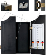 Unser Dartschrank besteht aus schwarzem Holz und ist in einem schlichten Vintage Design, mit kleinen Aged-Look-Applikationen, gehalten. Unser "Zauberschrank" ist nicht nur ein stylisches Objekt in jedem Raum, sondern lässt auch noch ganz einfach und geordnet Deine Dartscheibe und das Zubehör verschwinden.