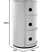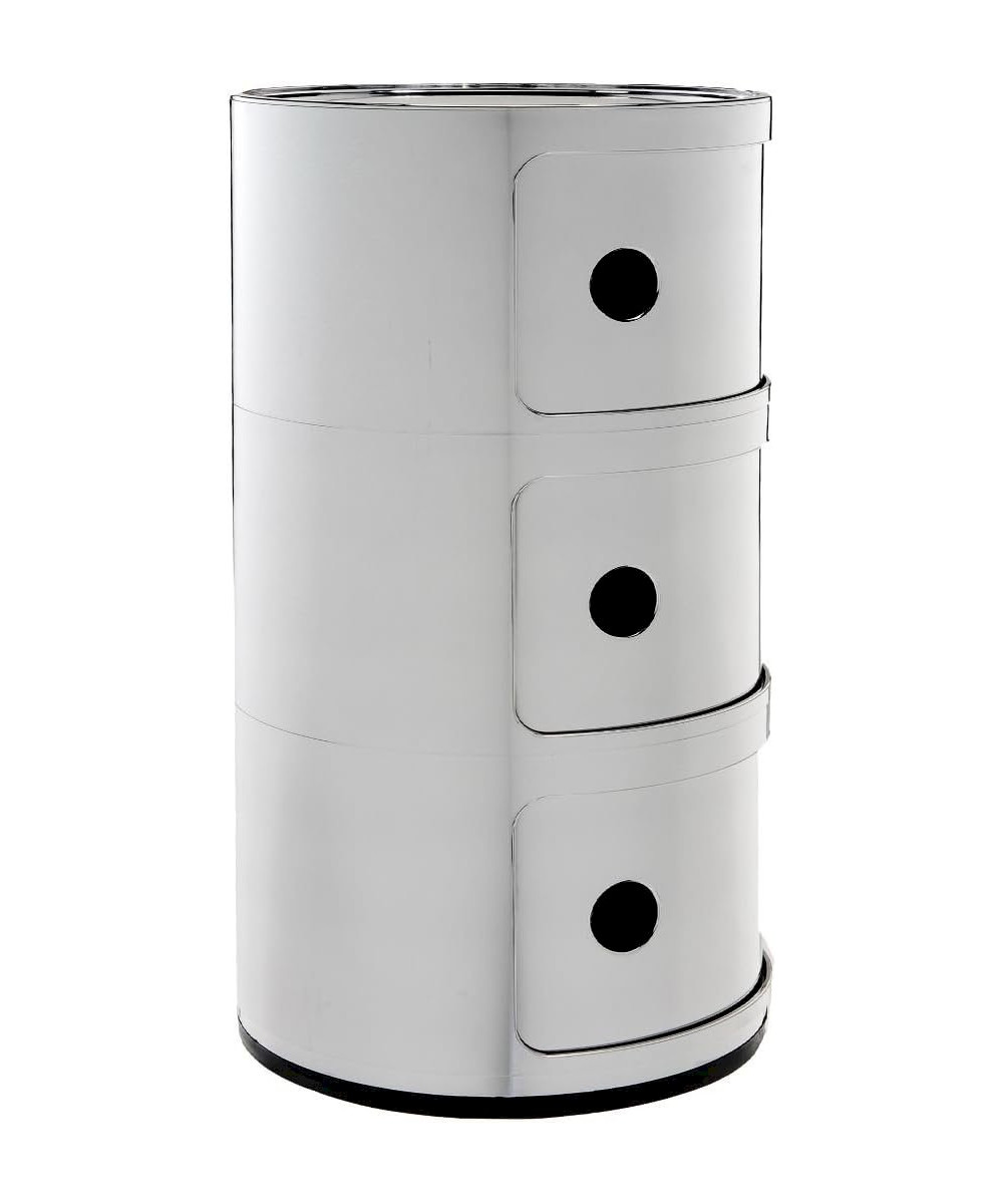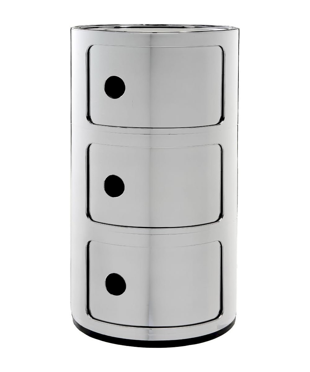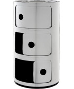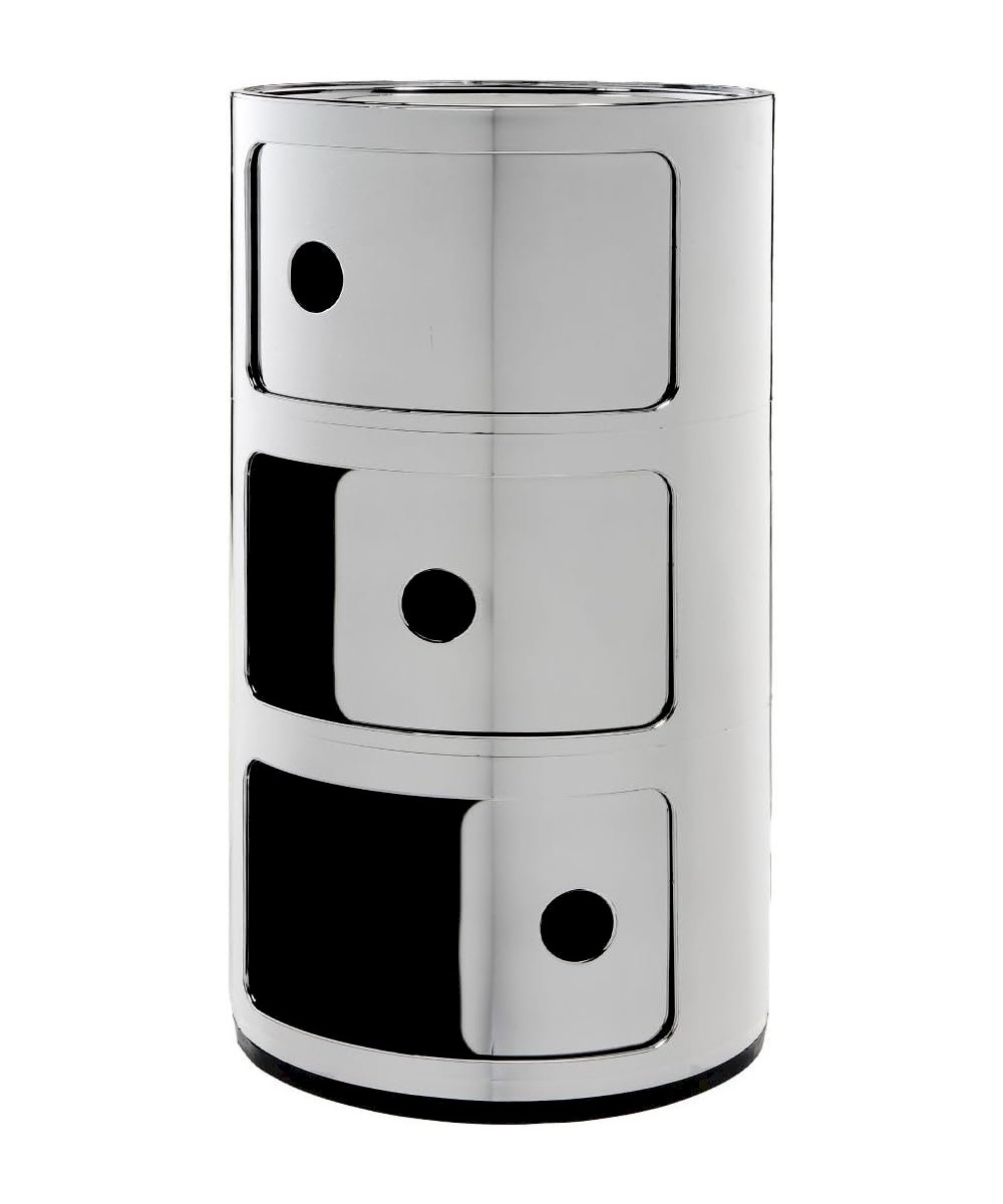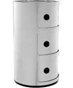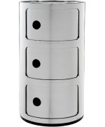 Die zusammensetzbaren Elemente wurden entwickelt, um verschiedene Verwendungsbedürfnisse zu erfüllen und in jedem Raum des Hauses verwendet werden zu können. Die im Jahr 1967 erstmals vorgestellten Componibili sind ein zeitloser Klassiker im Einrichtungssektor und werden heute in runder Ausführung mit 32 cm Durchmesser angeboten. Dank der festen Zusammensetzungen mit zwei, drei und vier Elementen erweisen sie sich als funktionelles und praktisches Zubehör in jedem beliebigen Raum. Dieses Modell ist in sechs Glossy-Finishs und mit einem Mattsilber-Finish erhältlich.