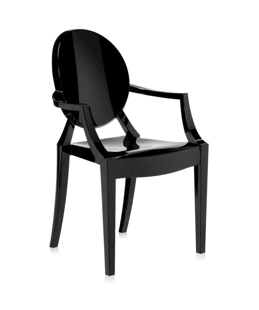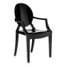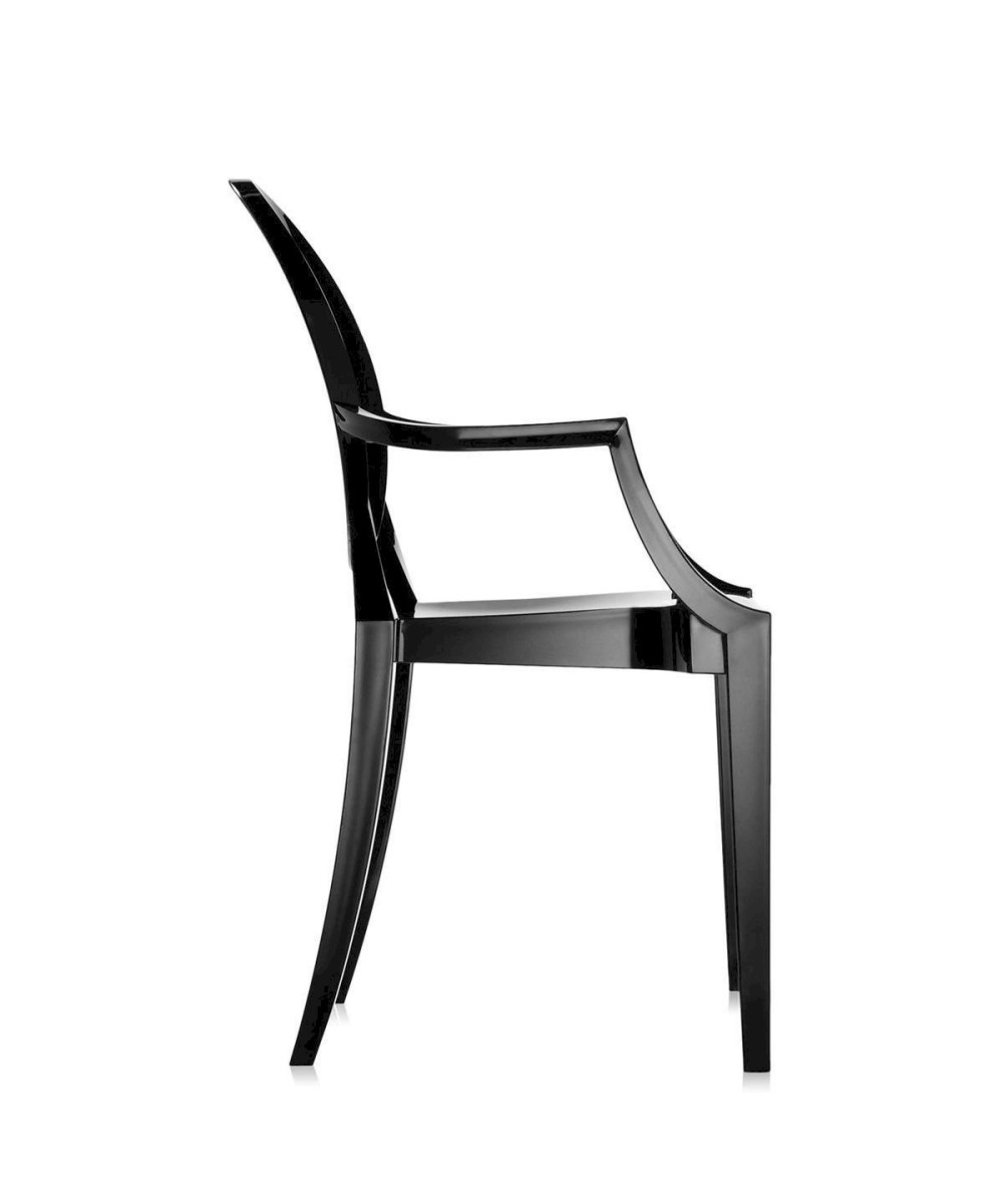 Ein bequemer Armlehnstuhl aus transparentem oder farbigem Polycarbonat mit einem am Louis-quinze-Stil inspirierten Design. Eine verblüffende und faszinierend moderne Hommage an den Barockstil. Louis Ghost ist auch technologisch ausgesprochen innovativ, er wird im Spritzgussverfahren nahtlos in einem Stück hergestellt, eine sehr mutige Verwendung des Werkstoffs Polycarbonat. Trotz des zarten und transparenten Aussehens ist Louis Ghost äußerst stabil und haltbar und stoßfest sowie beständig gegen Witterungseinflüsse.