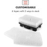 - 6 variable Ablagen mit 2 verschiedenen Stapelweisen für unterschiedlich große Lebensmittel