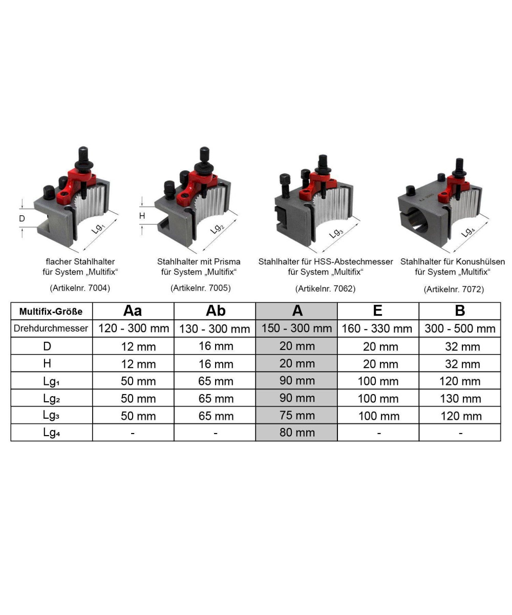 Bei uns erhalten Sie Schnellwechsel-Halter in allen gängigen Größen und für unterschiedliche Anwendungen. Der angebotene Stahlhalter AH 2090 für System "Multifix" passt zum Grundkörper der Größe A. Der Halter mit Prisma ist zum Spannen von runden Drehstählen geeignet.