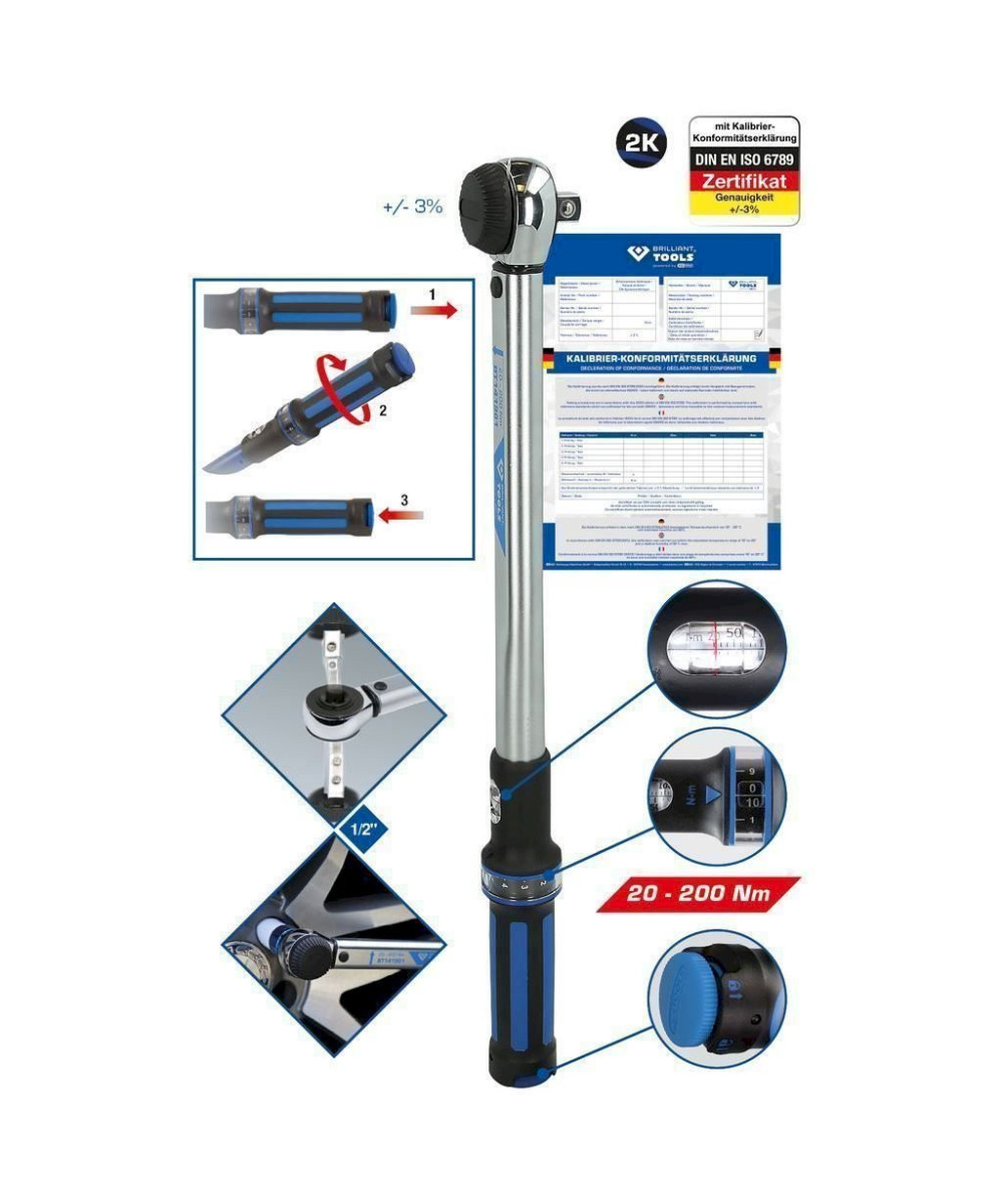 BRILLIANT TOOLS BT141901 1/2 Zoll Drehmomentschlüssel mit Drehknopf-Umsteck-Ratschenkopf, 20 - 200 Nm