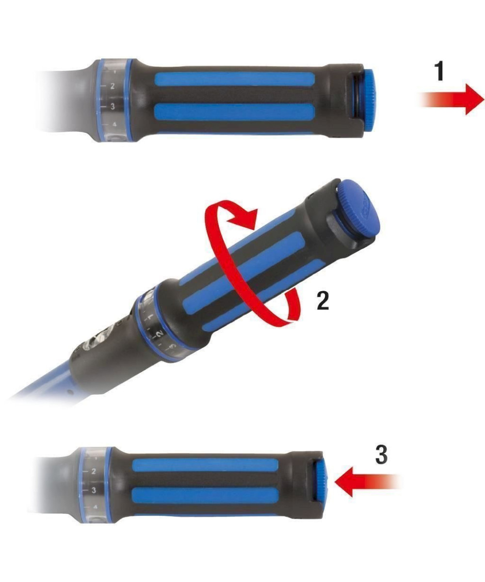 - Einstellen des Drehmoments schnell und sicher durch Drehen des Handgriffs