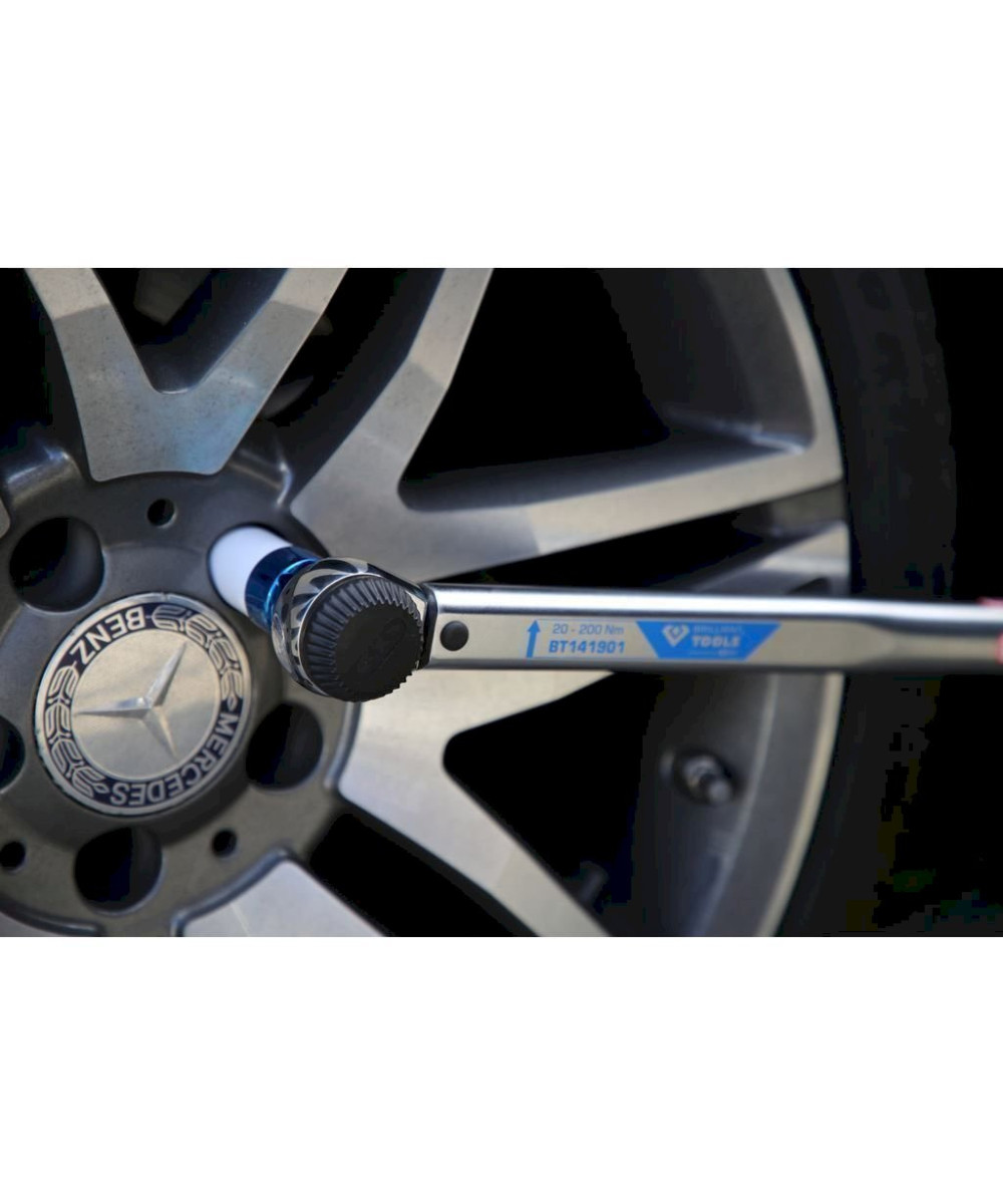 Mithilfe dieses BRILLIANT TOOLS Profi-Drehmomentschlüssels BT141901 lassen sich Schrauben und Muttern kontrolliert anziehen. Seine Einsatzmöglichkeiten sind sehr vielseitig. Die exakte Einstellung des gewünschten Drehmoments ist denkbar einfach und lässt sich sehr gut an der im Griff integrierten Skala ablesen. Auch die Feineinstellung, dank Mikrometerskala, ist hier möglich. Damit lassen sich Werte wie z.B. 84 Nm realisieren. Zum Einstellen muss nur die Verriegelung im Griff gelöst und dieser bis zum gewünschten Wert gedreht werden, anschließend wieder verriegeln. Durch den Drehmomentbereich von 20 - 200 Nm lassen sich verschiedenste Arbeiten an PKW oder Transporter erledigen. Der gut hör- und fühlbare Auslöse-Mechanismus, signalisiert Ihnen das Erreichen des eingestellten Drehmoments. Sein 1/2" Kopf kann umgesteckt werden und ist somit für Rechts- und Linksgewinde geeignet.