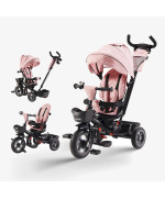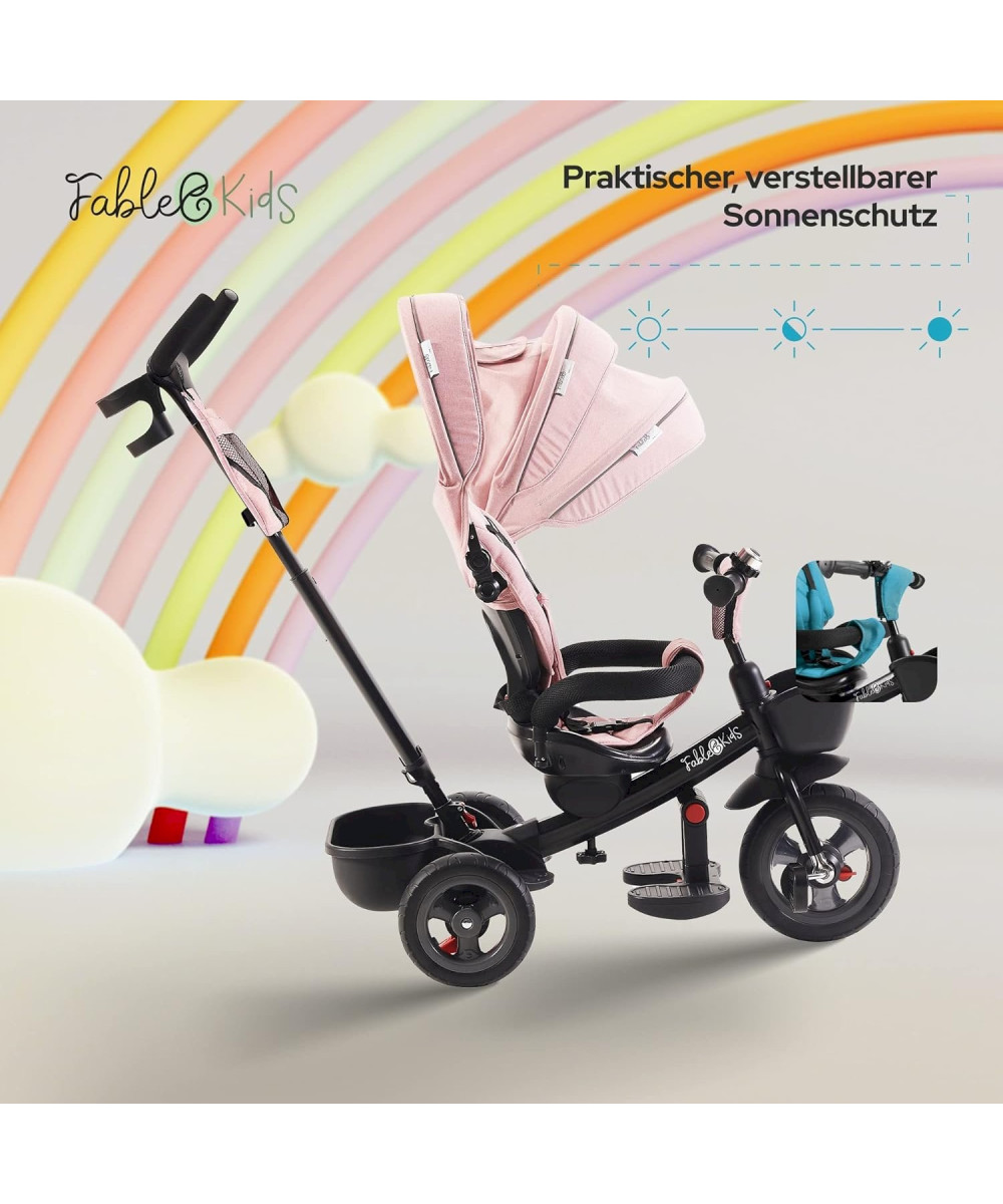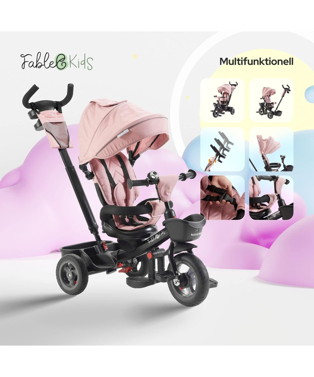 FableKids Noemi Dreirad 5in1 Kinderdreirad Kinder Lenkstange Fahrrad Baby Kinderwagen Pink