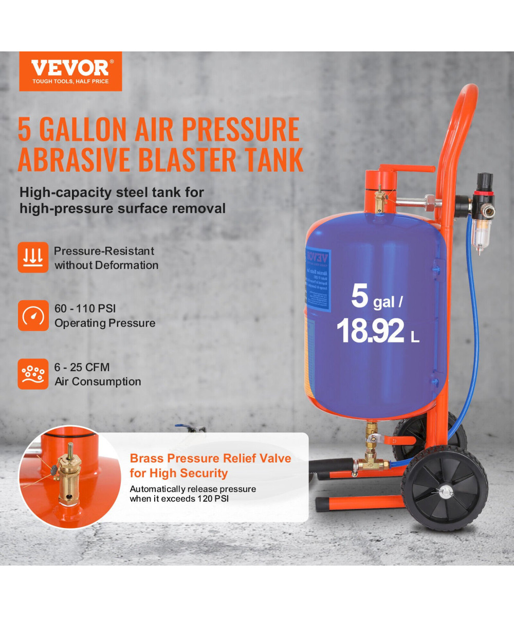 VEVOR Mobiles Sandstrahlgerät 18,92 L Sandstrahler Sandstrahlanlage 60–110 PSI