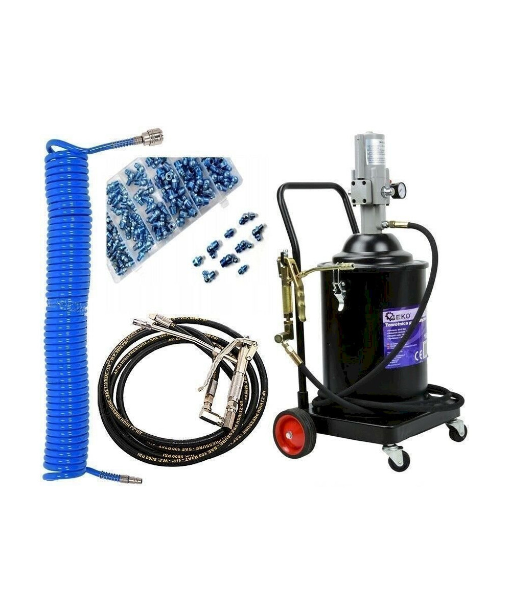 Geko 16L Fettpresse pneumatisch Druckluft Abschmierpresse fahrbar 16L+ Druckluftschla