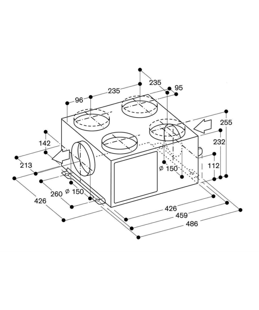 - Rohranschluss Ausblasseite: 1 x NW 150 rund
