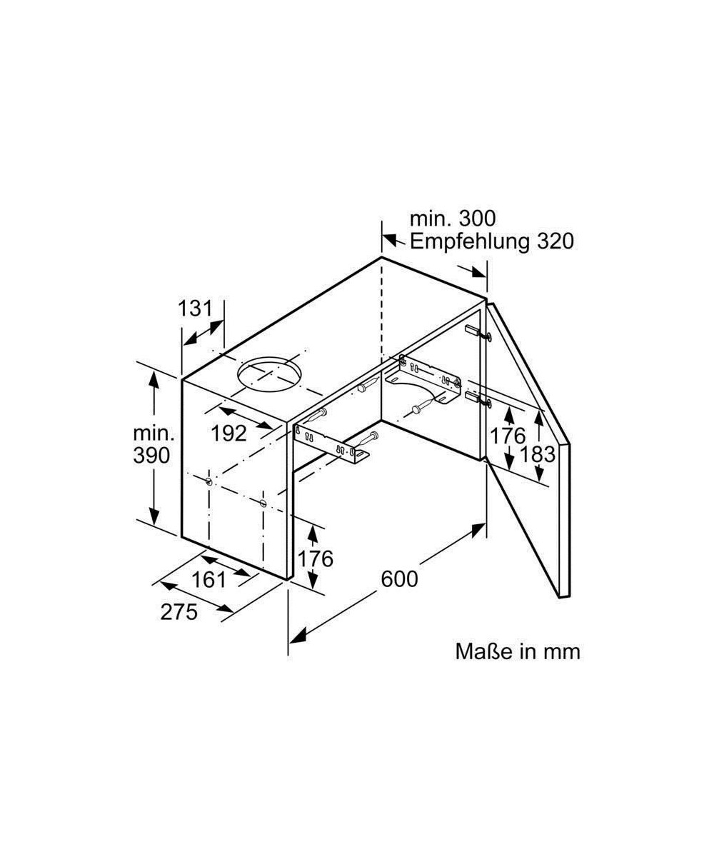 - Minimum Distanz vom Gas-Kochfeld: 65 cm