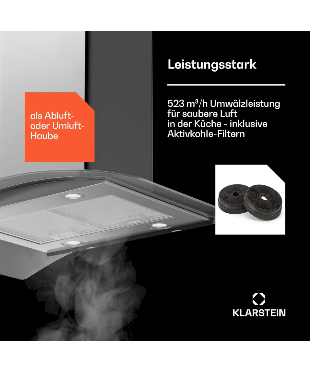 Beste Luft in der Küche durch schönste Effizienz: Die Klarstein Colette Dunstabzugshaube beseitigt zuverlässig Dampf beim Kochen und begeistert mit ihrem eleganten Design.