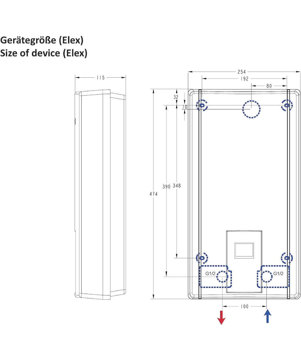- MONTAGE: Der Thermoflow Durchlauferhitzer mit G 1/2“ Anschlüssen lässt sich wandhängend anbringen. Mit 47,2 (H) x 25,5 (B) x 11,5 (T) cm kann das Warmwasser Untertischgerät platzsparend montiert werden