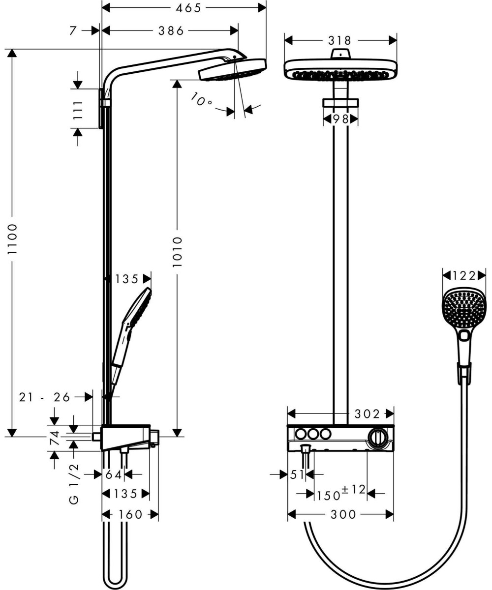 hansgrohe Raindance Select Showerpipe 27127400 E300 3jet, weiß/chrom, mit ShowerTablet