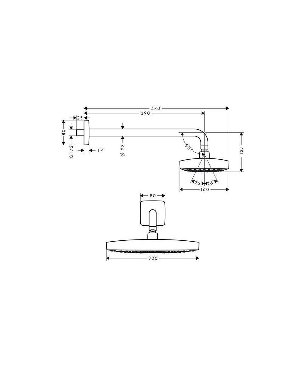 Hansgrohe Raindance Select E 300 2jet Kopfbrause mit Brausearm 390 mm weiß/chrom 27385400