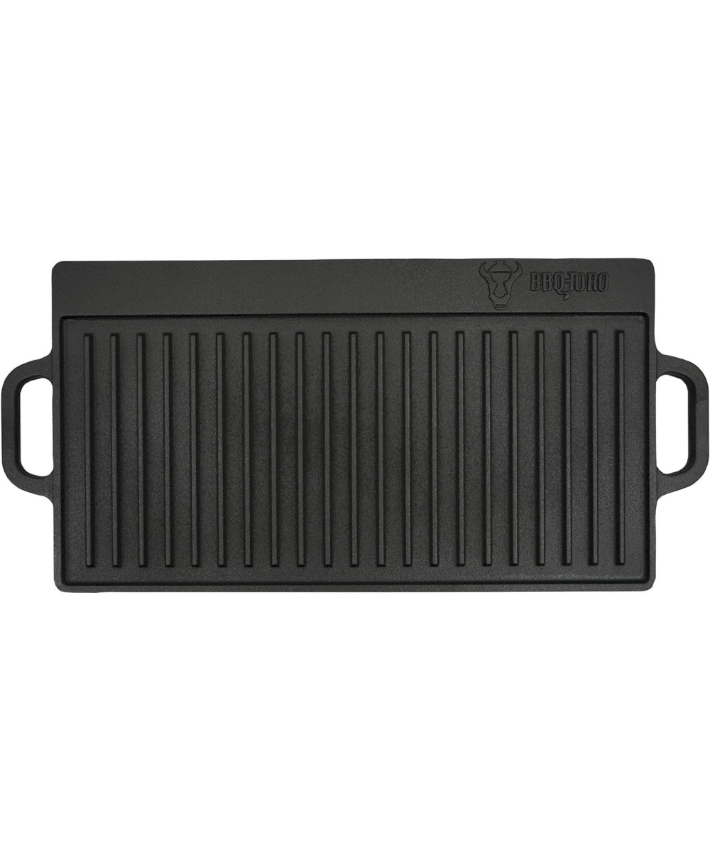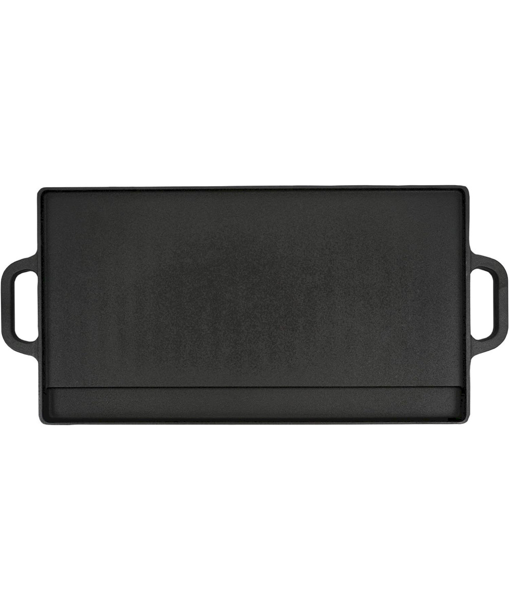 Was ist der Dutch Oven? Ein schwerer, traditioneller, gusseiserner Topf und ein exakt passender Deckel mit dem man überall kochen, braten, schmoren, frittieren, dünsten und backen kann. Egal ob Feuerstelle, Grillplatz oder Lagerfeuer, er ist mobil und flexibel einsetzbar. Der Dutch Oven reguliert dank seiner hohen Masse (Gusseisen) ungleichmäßige Hitze und ermöglicht so ein gleichmäßiges Garen. Einfach glühende Kohlen, Glut oder Grillbriketts auf den Deckel und unter den Topf geben und das Dutch Oven-Erlebnis kann losgehen. Im Dutch Oven gelingen Gerichte wie Schmorbraten, Eintöpfe, Brot und Kuchen. Die Wendegrillplatte kann von beiden Seiten genutzt werden. Auf der gerippten Seite gelingen perfekte Steaks. Die andere Seite der Grillplatte kann optimal für Omlette und Pfannkuchen genutzt werden, da diese glatt ist.
