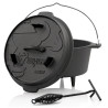 Der Dutch Oven ist ein schwerer, traditioneller, gusseiserner Topf und ein exakt passender Deckel mit dem man überall kochen, braten, schmoren, frittieren, dünsten und backen kann. Der Dutch Oven reguliert dank seiner hohen Masse (Gusseisen) ungleichmäßige Hitze und ermöglicht so ein gleichmäßiges Garen. Einfach glühende Kohlen, Glut oder Grillbriketts auf den Deckel und unter den Topf geben und das Dutch Oven-Erlebnis kann losgehen. Der extra erhöhte Deckelrand und die drei Beine bieten optimale Bedingungen für Kohle und Co.