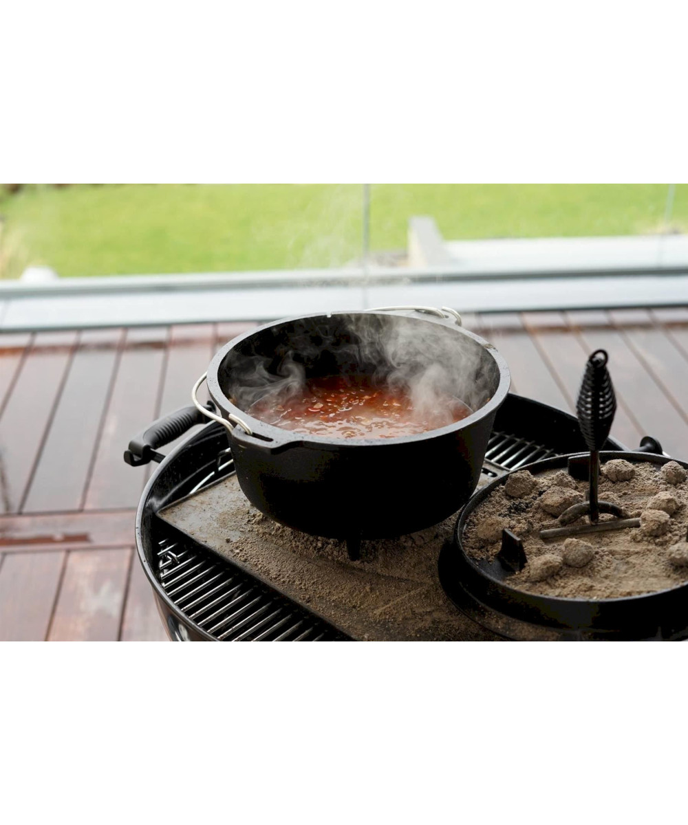 Im Dutch Oven gelingen so kinderleicht Gerichte wie Schmorbraten, Eintöpfe, Brot, Kuchen und vieles mehr. Egal ob Feuerstelle, Grillplatz oder Lagerfeuer, der Gusstopf ist mobil und flexibel einsetzbar. Die drei Beine bieten stabilen Stand - ein separater Topfständer wird nicht benötigt. Speisen wie z.B. Fleisch werden im Dutch Oven einmalig zart und entwickeln ein herausragendes Aroma - Sie werden begeistert sein!