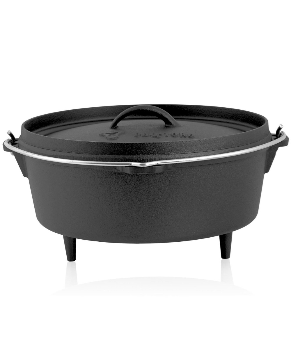Im Dutch Oven gelingen so kinderleicht Gerichte wie Schmorbraten, Eintöpfe, Brot, Kuchen und vieles mehr. Egal ob Feuerstelle, Grillplatz oder Lagerfeuer, der Gusstopf ist mobil und flexibel einsetzbar. Ein Topfständer ist bereits im Lieferumfang enthalten. Speisen wie z.B. Fleisch werden im Dutch Oven einmalig zart und entwickeln ein herausragendes Aroma - Sie werden begeistert sein!