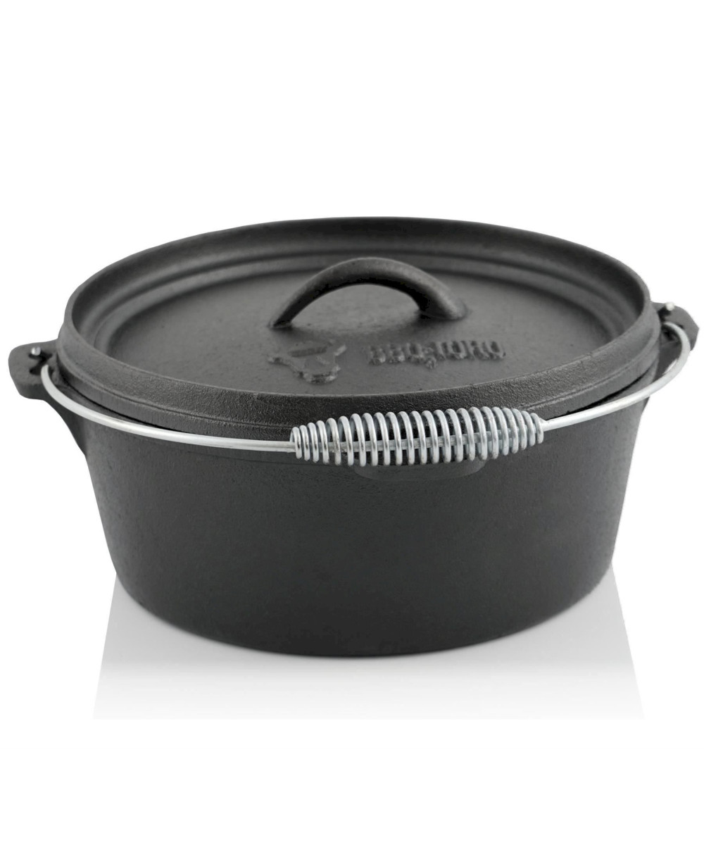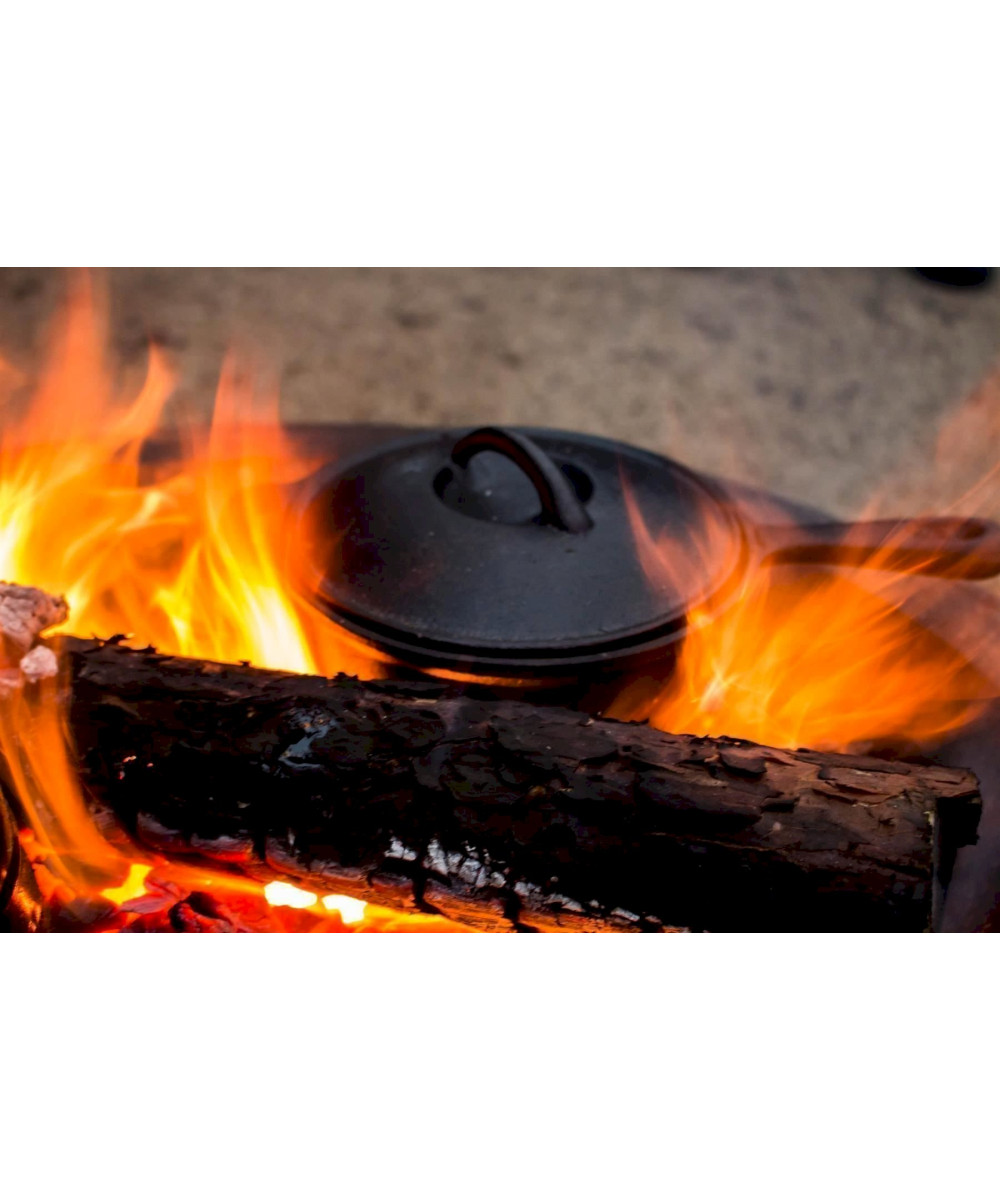 Der Dutch Oven ist ein schwerer, traditioneller, gusseiserner Topf und ein exakt passender Deckel mit dem man überall kochen, braten, schmoren, frittieren, dünsten und backen kann. Der Dutch Oven reguliert dank seiner hohen Masse (Gusseisen) ungleichmäßige Hitze und ermöglicht so ein gleichmäßiges Garen. Einfach glühende Kohlen, Glut oder Grillbriketts auf den Deckel und unter den Topf geben und das Dutch Oven-Erlebnis kann losgehen.