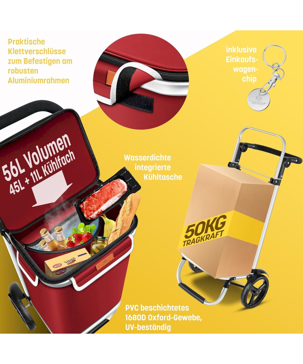 KESSER Einkaufstrolley klappbar 56L Bordeaux Rot Einkaufsroller Einkaufswagen